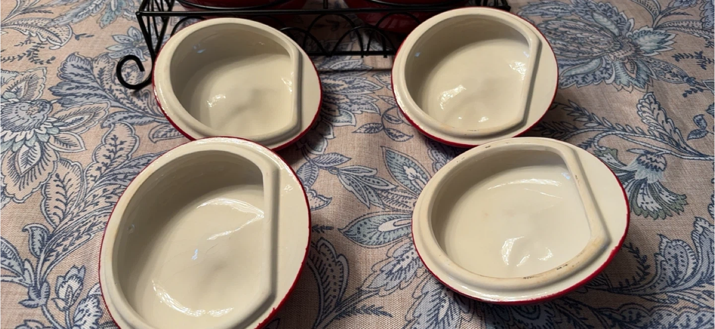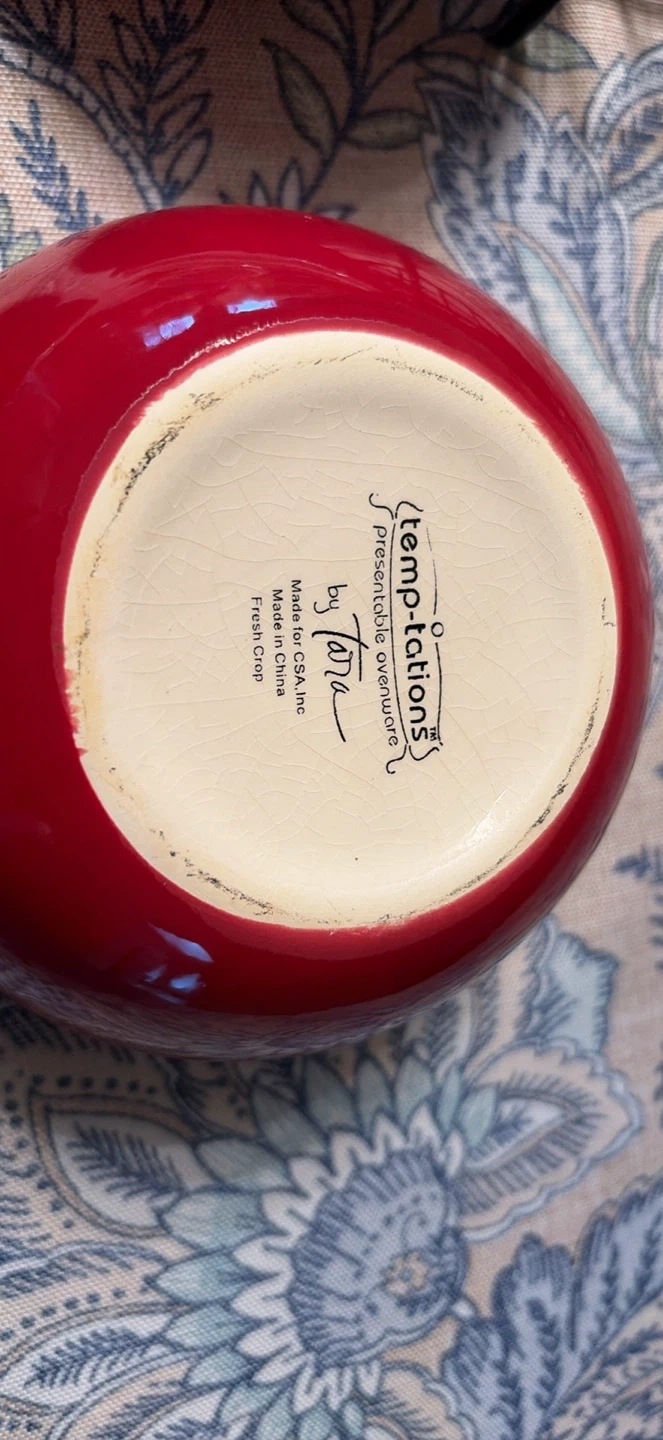 Set of four Temp-tations by Tara ceramic bowls shaped like apples. Model: Fresh Crop. Made in China. These are great for serving small portions of food or for decorative use. In great condition.