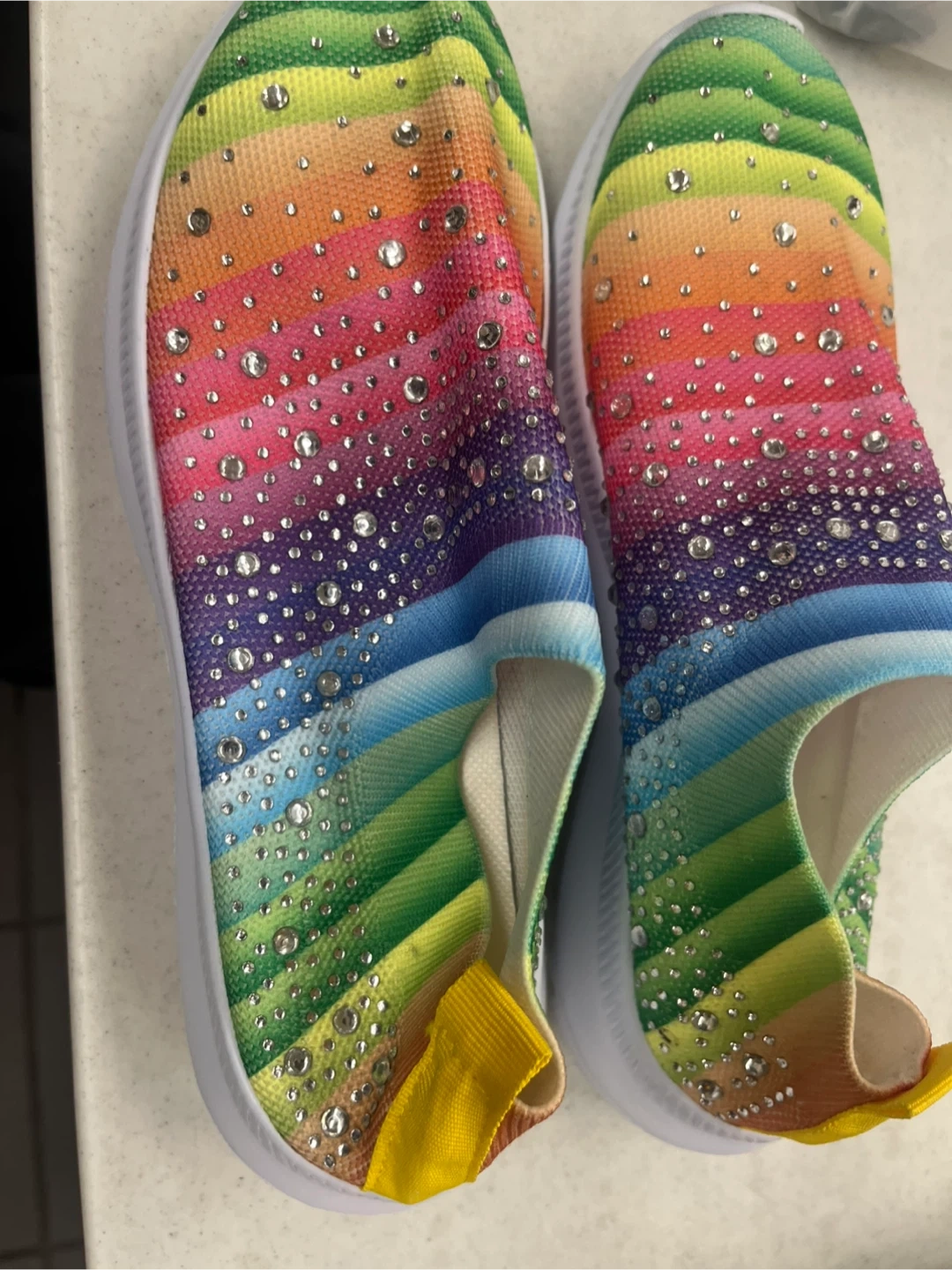 Rainbow Rhinestone Slip-On Sneakers