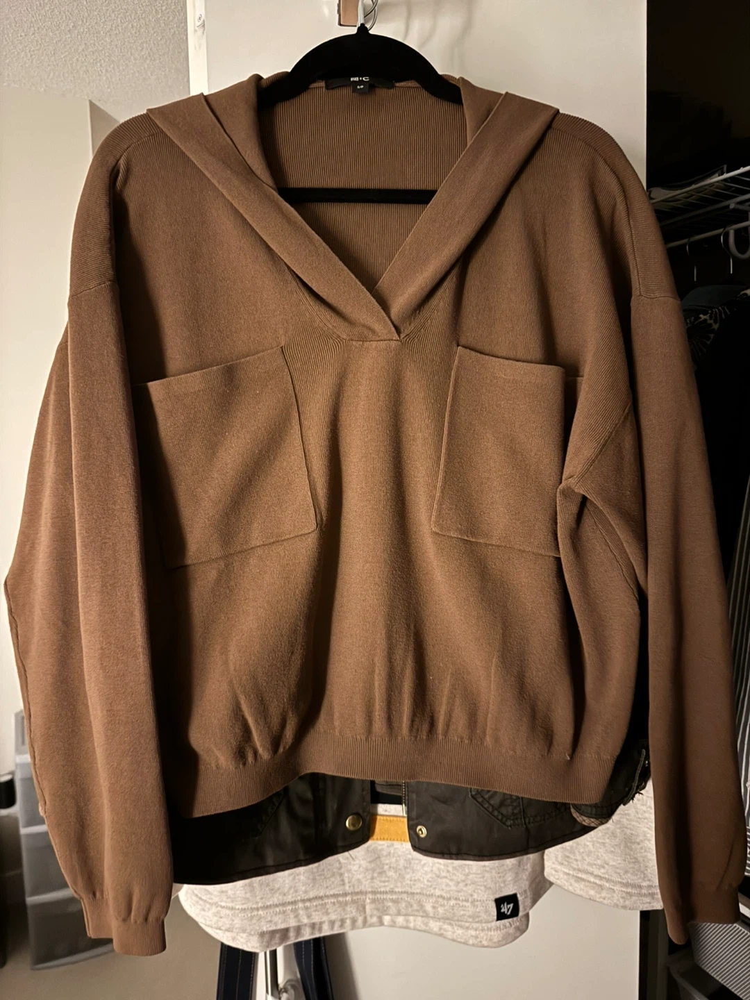 Uniqlo knit hoodie in a lovely brown colour. It's a size Small Women’s (a bit boxy, relaxed)