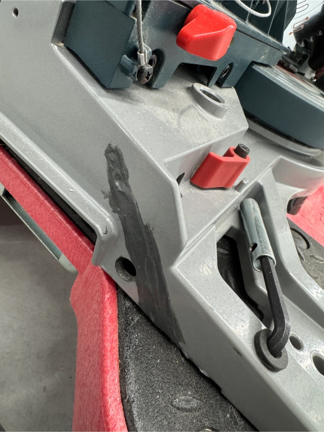 Note: Please check picture, the saw base had a small crack (not through crack), which was filled with cement glue (similar to bondo) to prevent the crack from further opening. I noticed this crack after the return window and was not worth it to go through Bosch warranty, as it has no effect on functionality. I build some excellent projects with this saw and it is very accurate and reliable. Just selling as am no longer doing woodworking.
