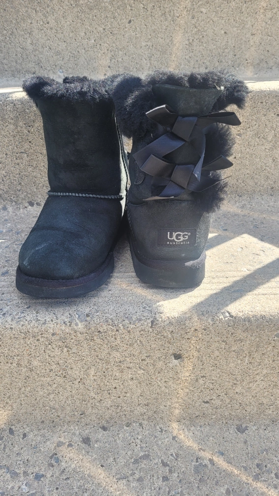 Selling a pair of UGG Australia boots in black! They feature a cute bow detail on the back. These boots were well loved and used condition, but still has lots of life left!