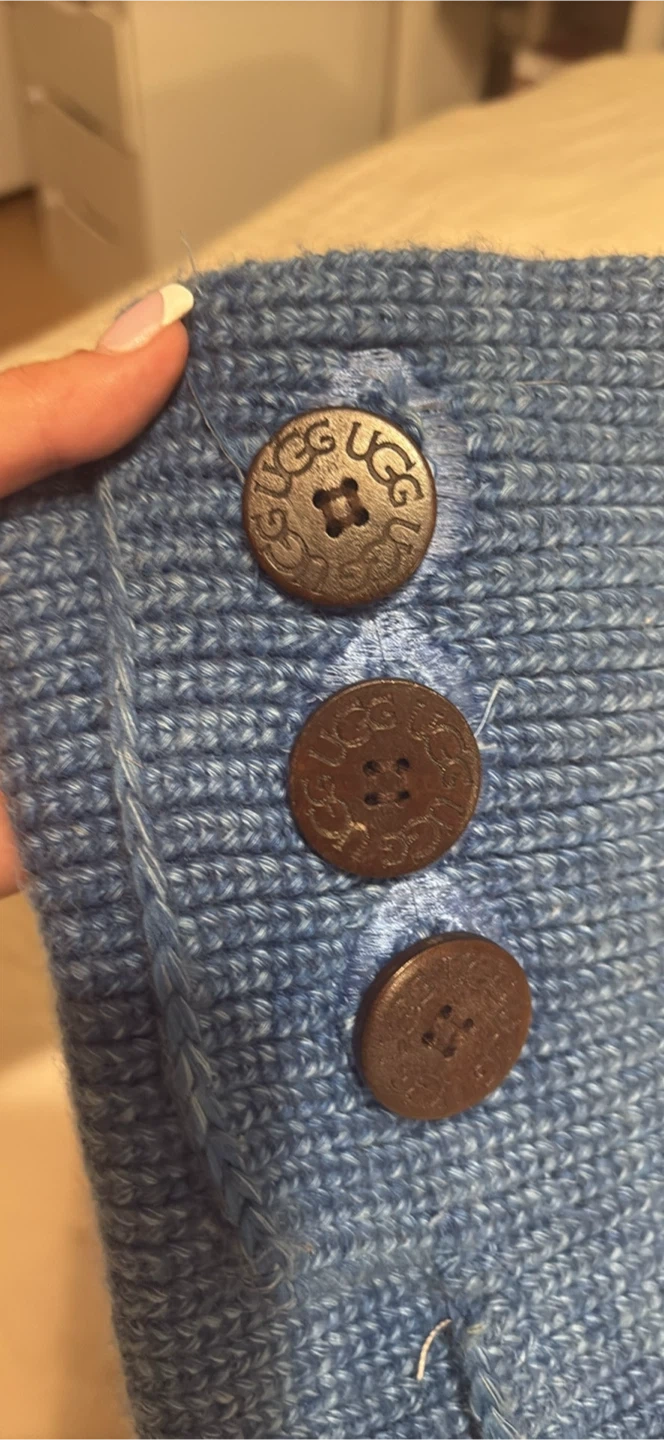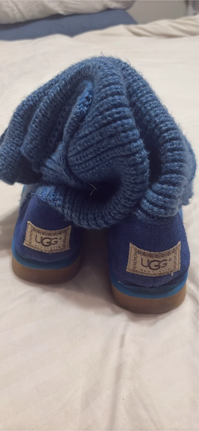 Cozy UGG boots in a lovely blue knit! These are perfect for keeping your feet warm and stylish. They feature the classic UGG buttons and are in great condition. A must-have for those chilly Canadian days!