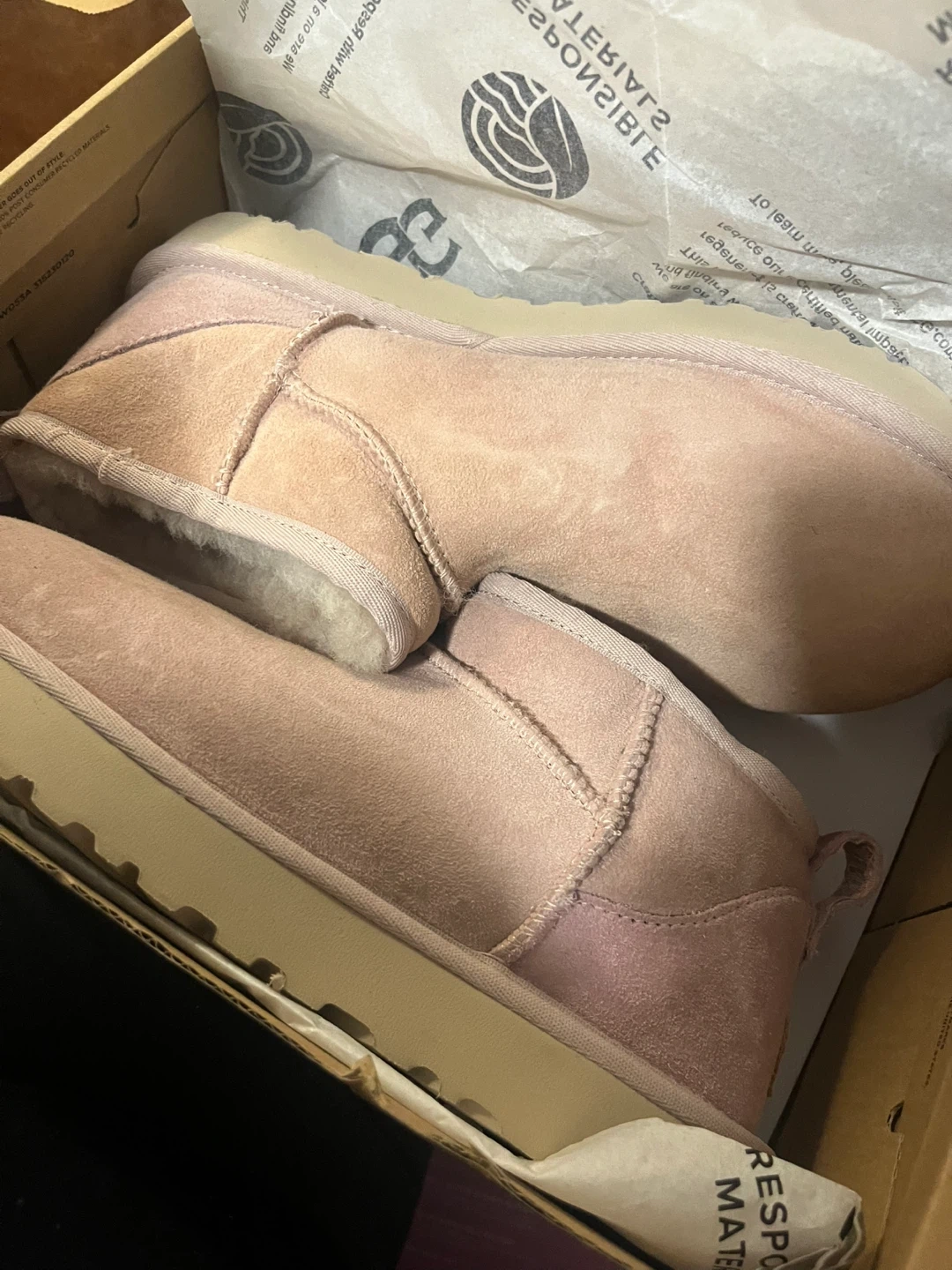 0Selling a pair of UGG Classic Ultra Mini boots in the Rose Grey colour. These are a women's size 10. They come with the original box. Originally bought for $185
