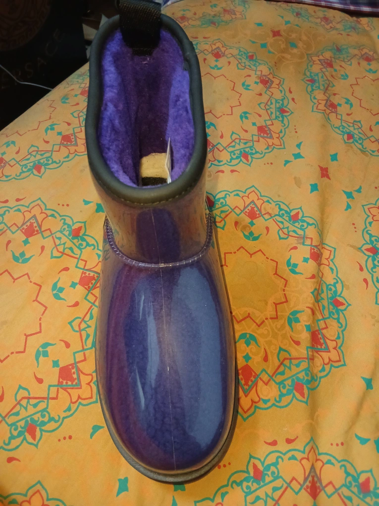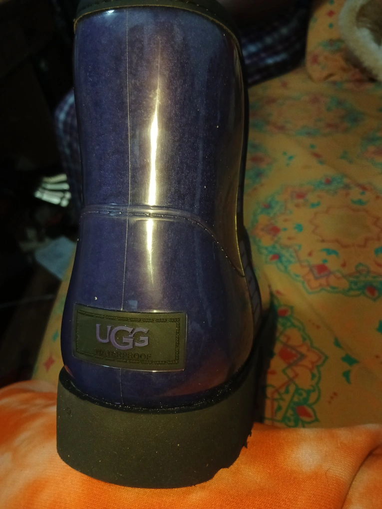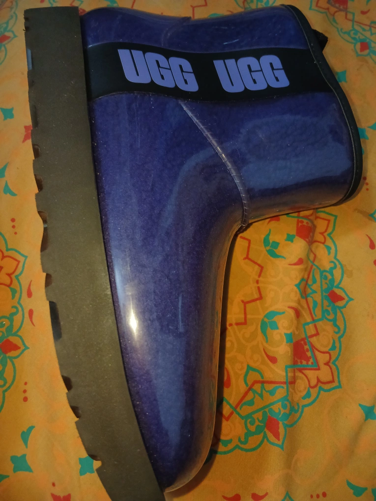 Keep your feet dry and stylish with these UGG Droplet waterproof rain boots! The boots are a beautiful purple colour and feature the UGG logo on the upper and sole. They are in great condition and ready for the rainy season!