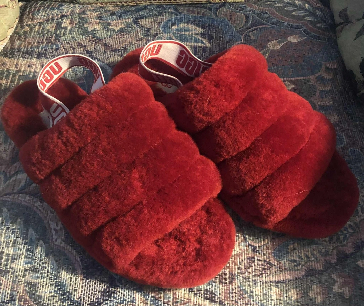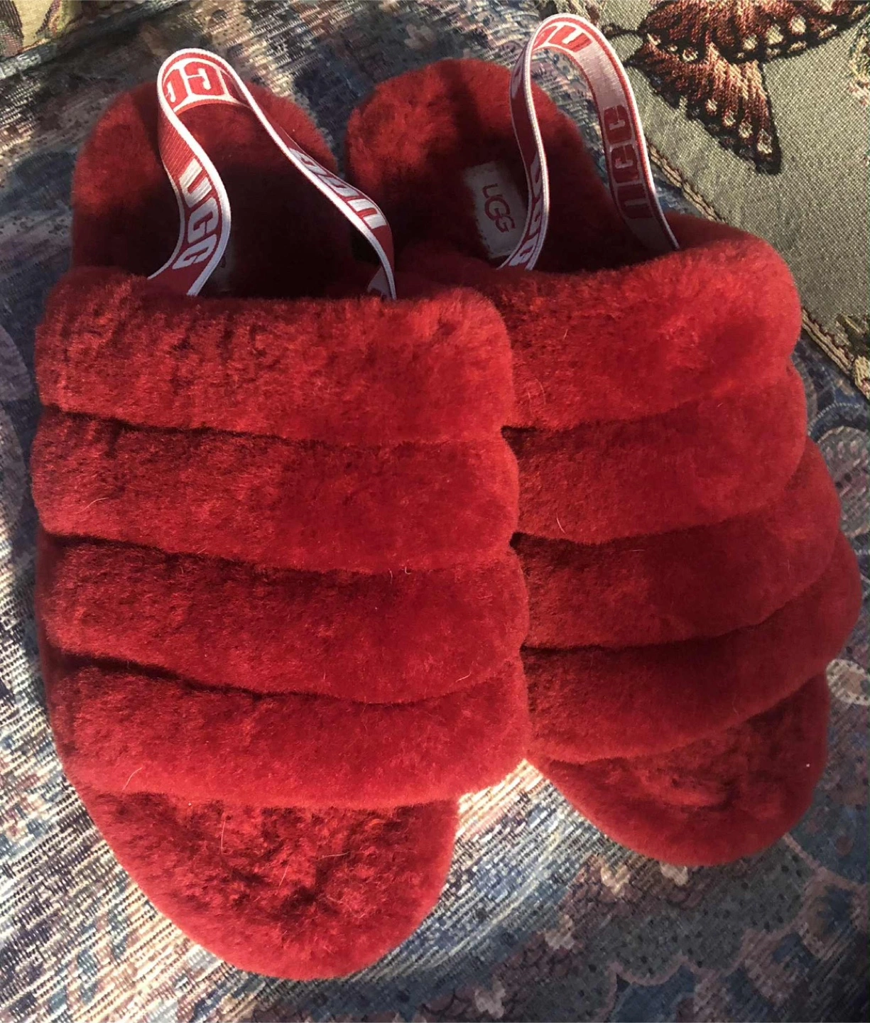 UGG Fluff Yeah Slide Slippers Preloved condition Size 9 Colour red $25 All sales are final no refunds. Pickup only.