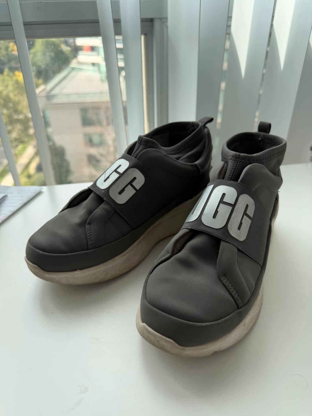 60Selling a pair of UGG Neutra Sneakers in gray, size 7.5 US. True to size, I’m 38 EU. They're in good condition and super comfy for everyday wear!
