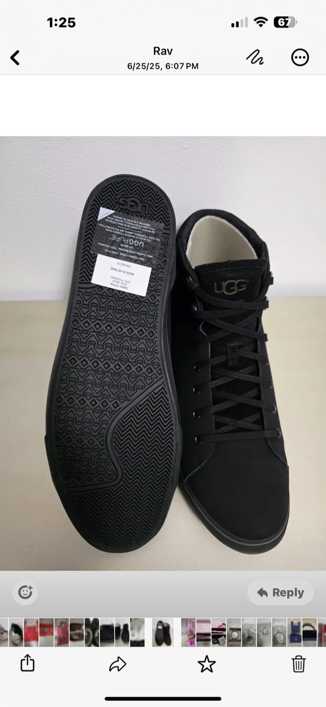 76Selling a pair of UGG UGGpure high-top sneakers in black! These stylish sneakers feature an upper lining of 50% wool and 50% polyester, making them super comfy