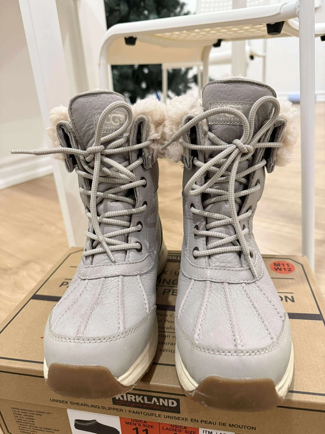 65Cozy and stylish UGG Adirondack III winter boots in a lovely grey colour! These boots are a women's size 5.5. Perfect for keeping your feet warm and dry during the cold Canadian winters. They're in great condition and ready for a new home!