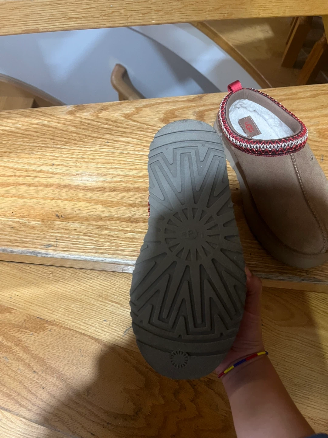 15Cozy UGG Tasman slippers in a youth size 4! These are perfect for keeping your feet warm and comfortable around the house. They feature the classic UGG design with a durable sole, so you can even wear them for quick trips outside. The slippers are in great condition and ready for a new home. I bought them but they don’t fit so I need to get rid of them