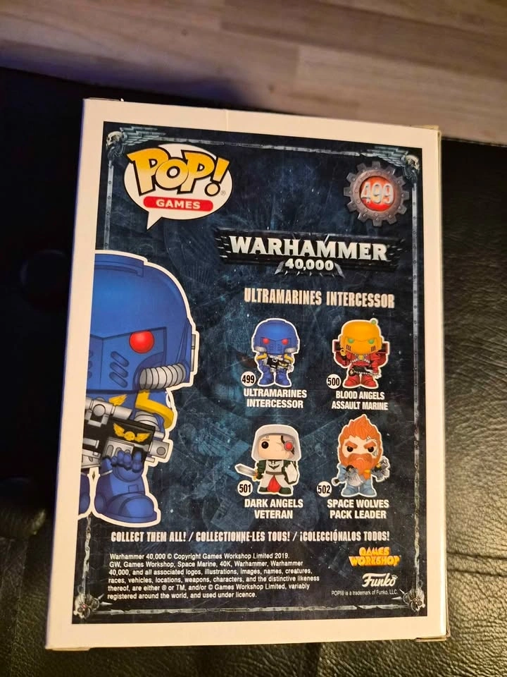 Buy & SellFunko Pop Warhammer 40,000 Ultramarines Intercessor #499Funko Pop Warhammer 40,000 Ultramarines Intercessor #499$72Awesome Funko Pop from Warhammer 40,000. Ultramarines Intercessor #499. Still in box, never opened.WHERE TO MEETCheck LocationView MapSELLERverifiedJennWestminster600 reviews0 chats·0 favorites·2 viewsSEND CHAT TO SELLERHi Jenn! I’m interested in your listing.Hi Jenn! I’m interested in your listing.Get the Karrot app to chatSign In to chat
