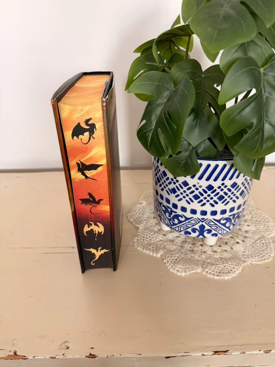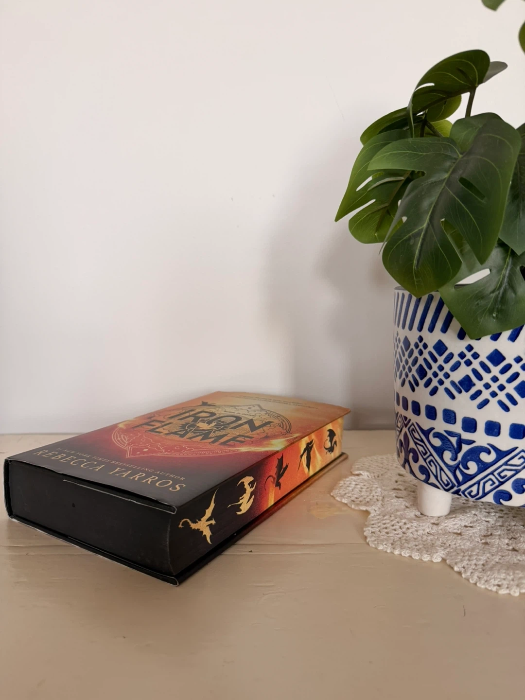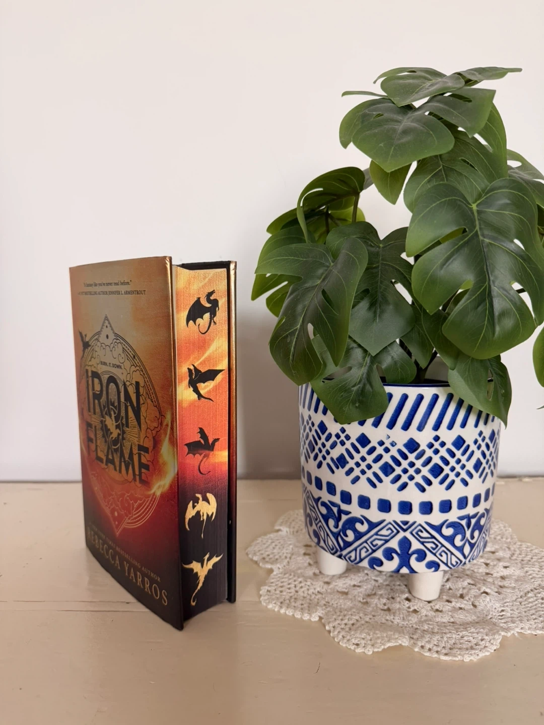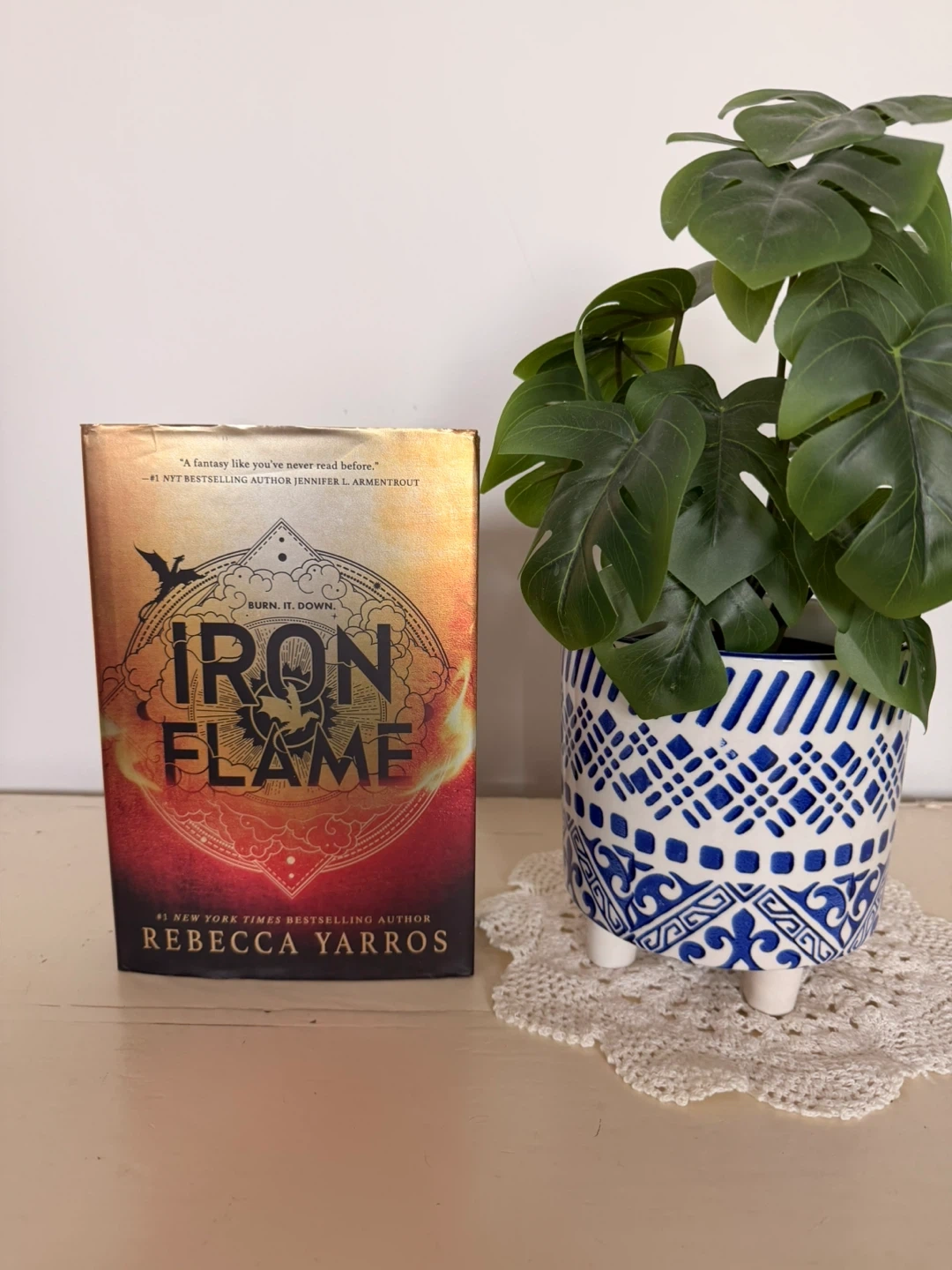 This is the 'Iron Flame' hardcover book with gorgeous sprayed edges by Rebecca Yarros! It is the second book in the bestselling Empyrean series. A perfect read for fantasy lovers!