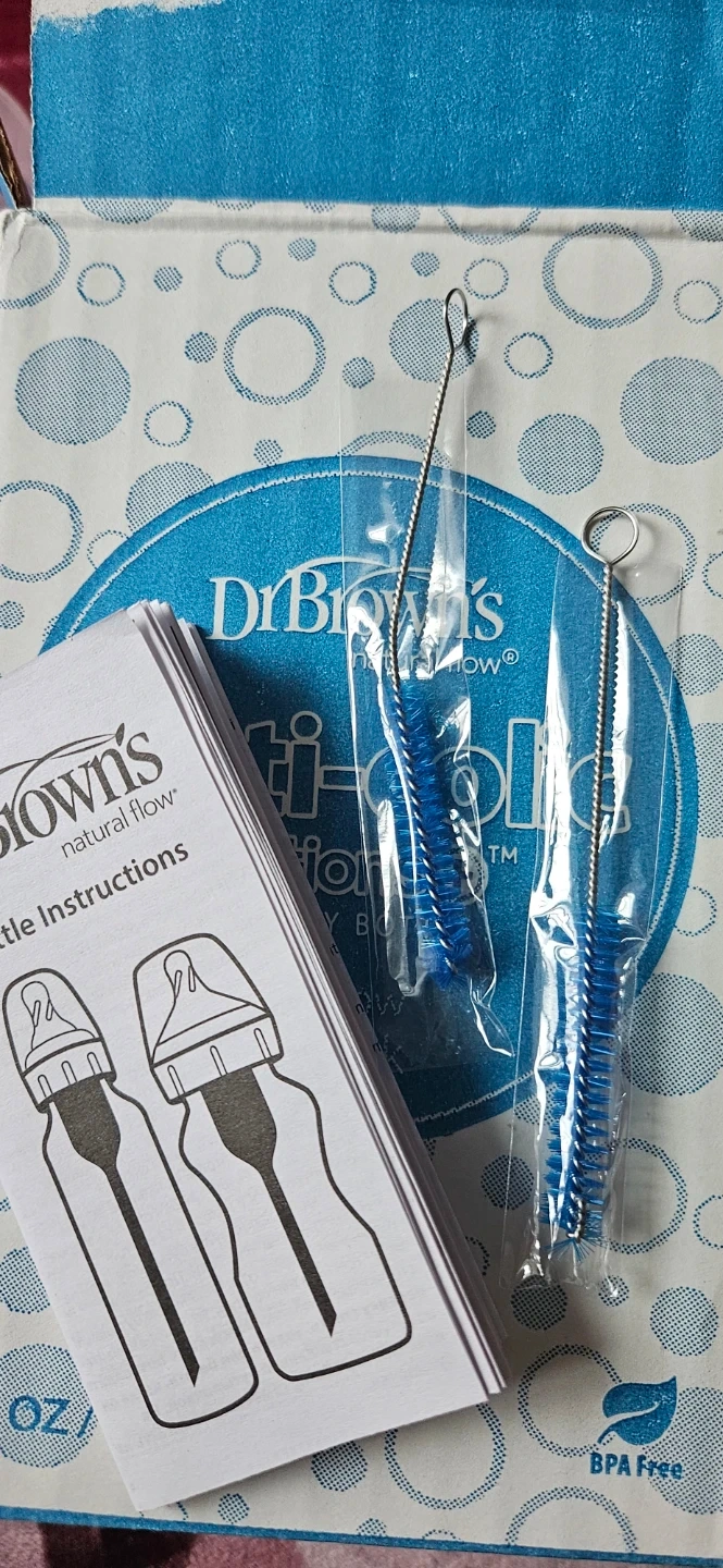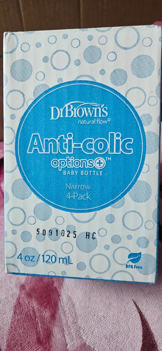 Dr. Brown's Anti-Colic Options+ Narrow Baby Bottles come in a 4 oz (120 ml) 4-pack. These BPA-free bottles are designed to prevent leaks. Includes bottle instructions and cleaning brushes.