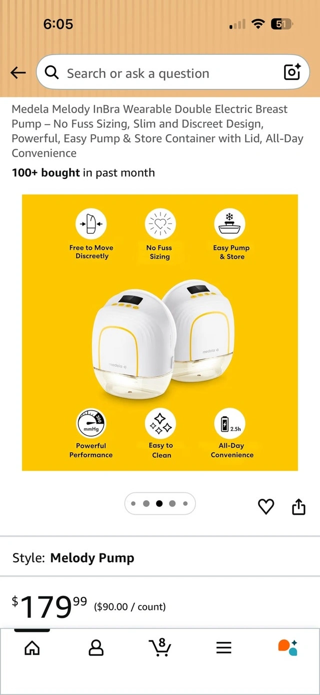 Medela Melody InBra wearable breast pump, includes two pumps for double pumping.