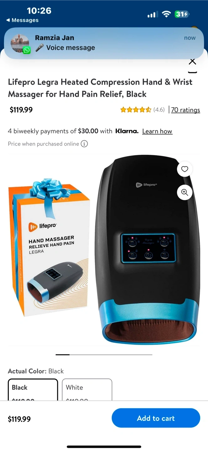 This is the Lifepro Legra hand and wrist massager. It offers heated compression for pain relief. Includes original box and accessories.