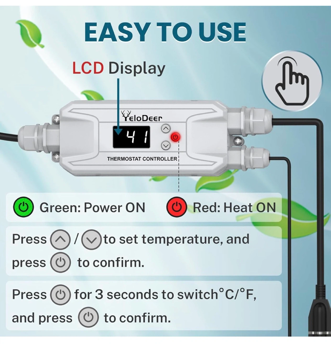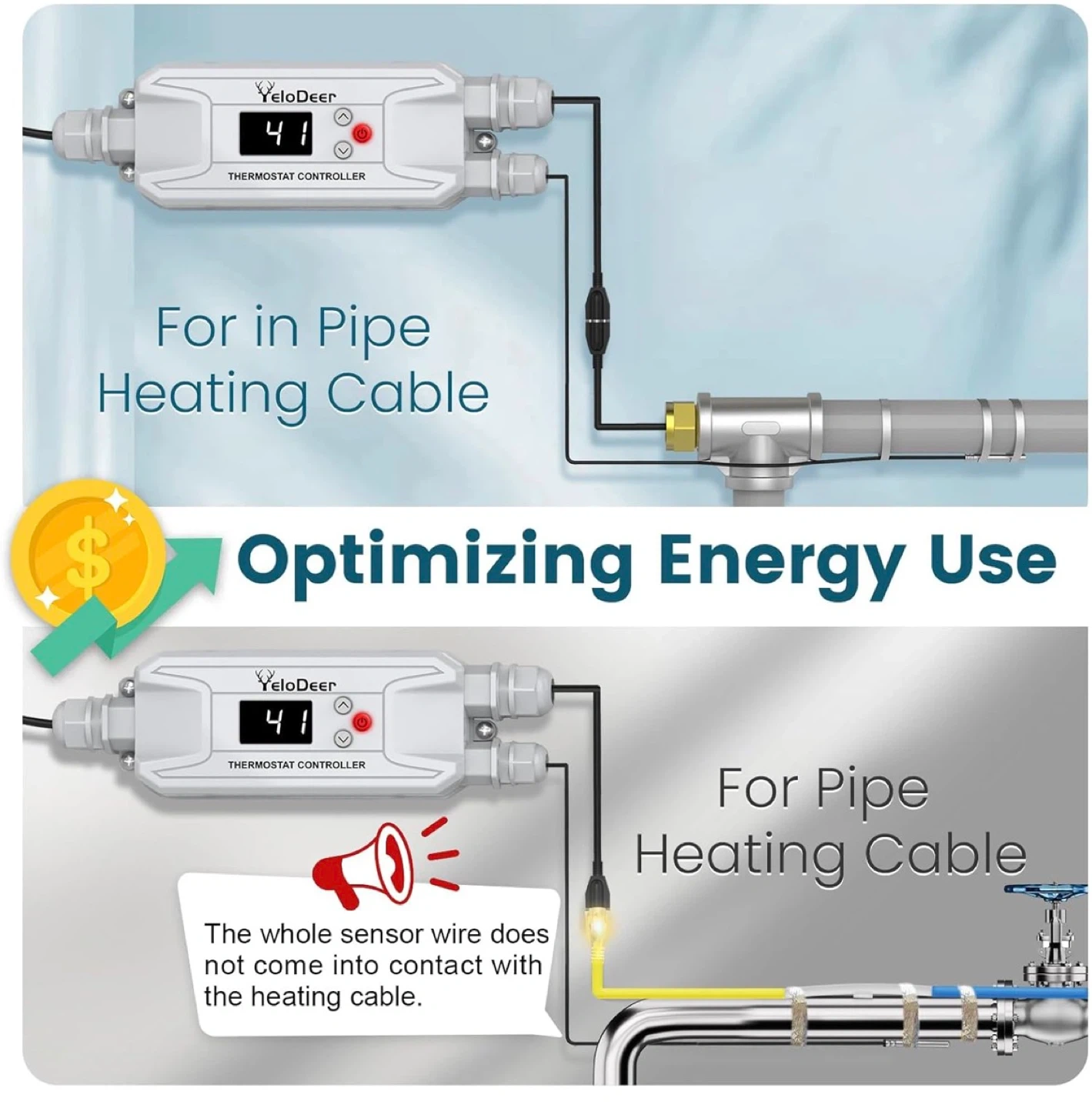 YeloDeer Thermostat Controller for In-Pipe Heating Cables