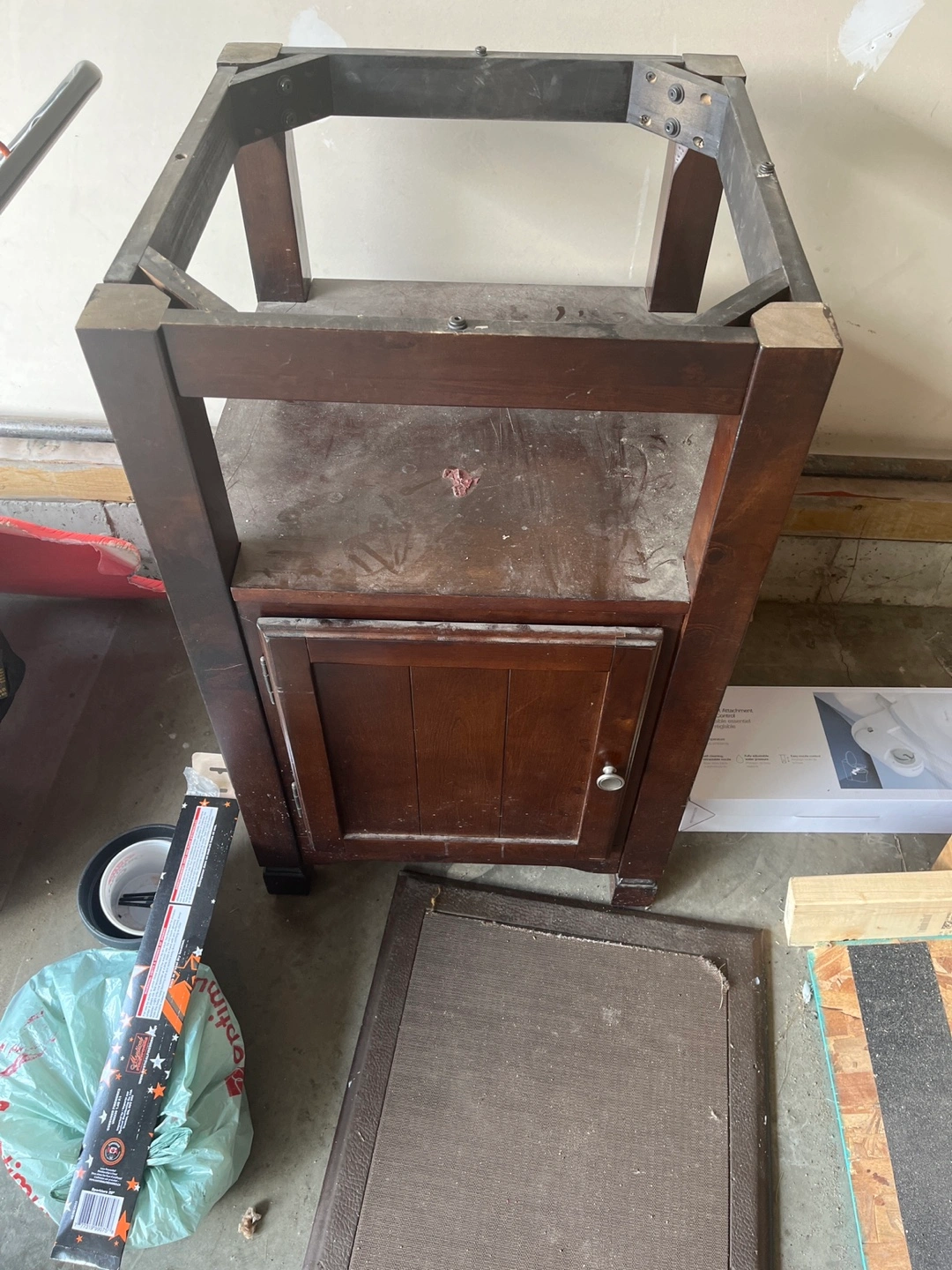 Wooden table and cabinet. Tabletop is square-shaped. The cabinet features a single door. Great for holding your favourite items or keeping things organized in your house. It is slightly dirty but can be washed off with water. Open to negotiations. It will be wiped down and cleaned before being given to the new owner.