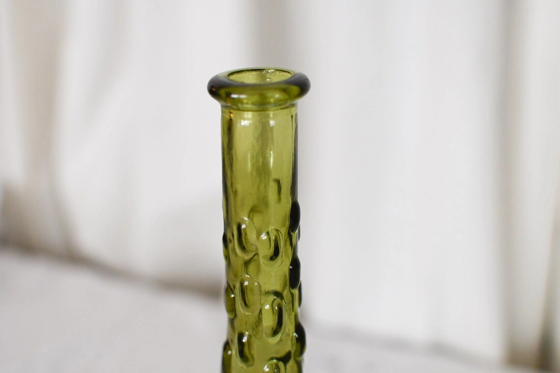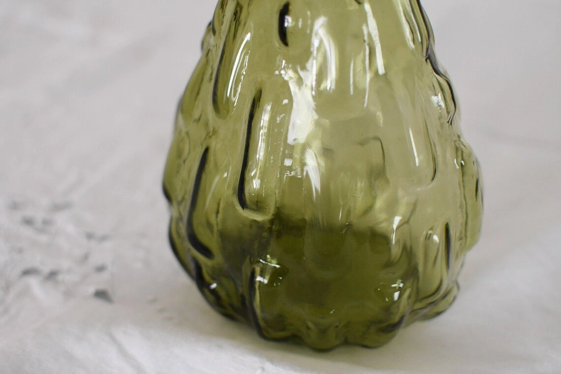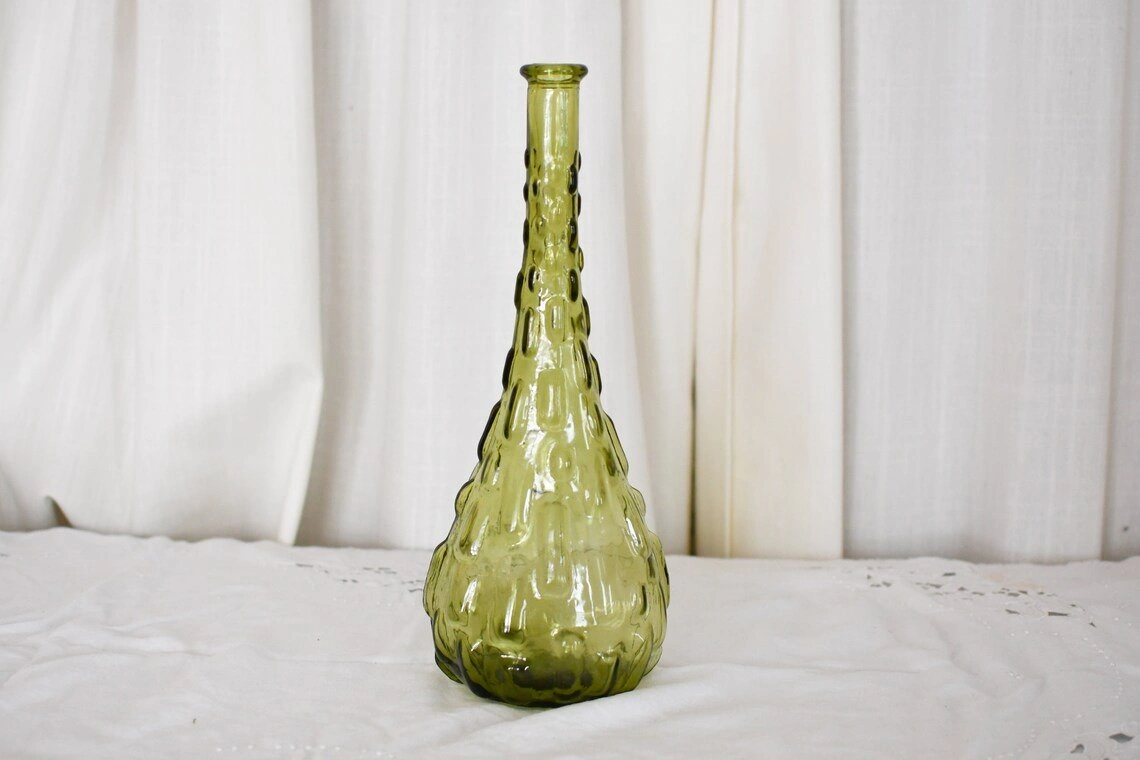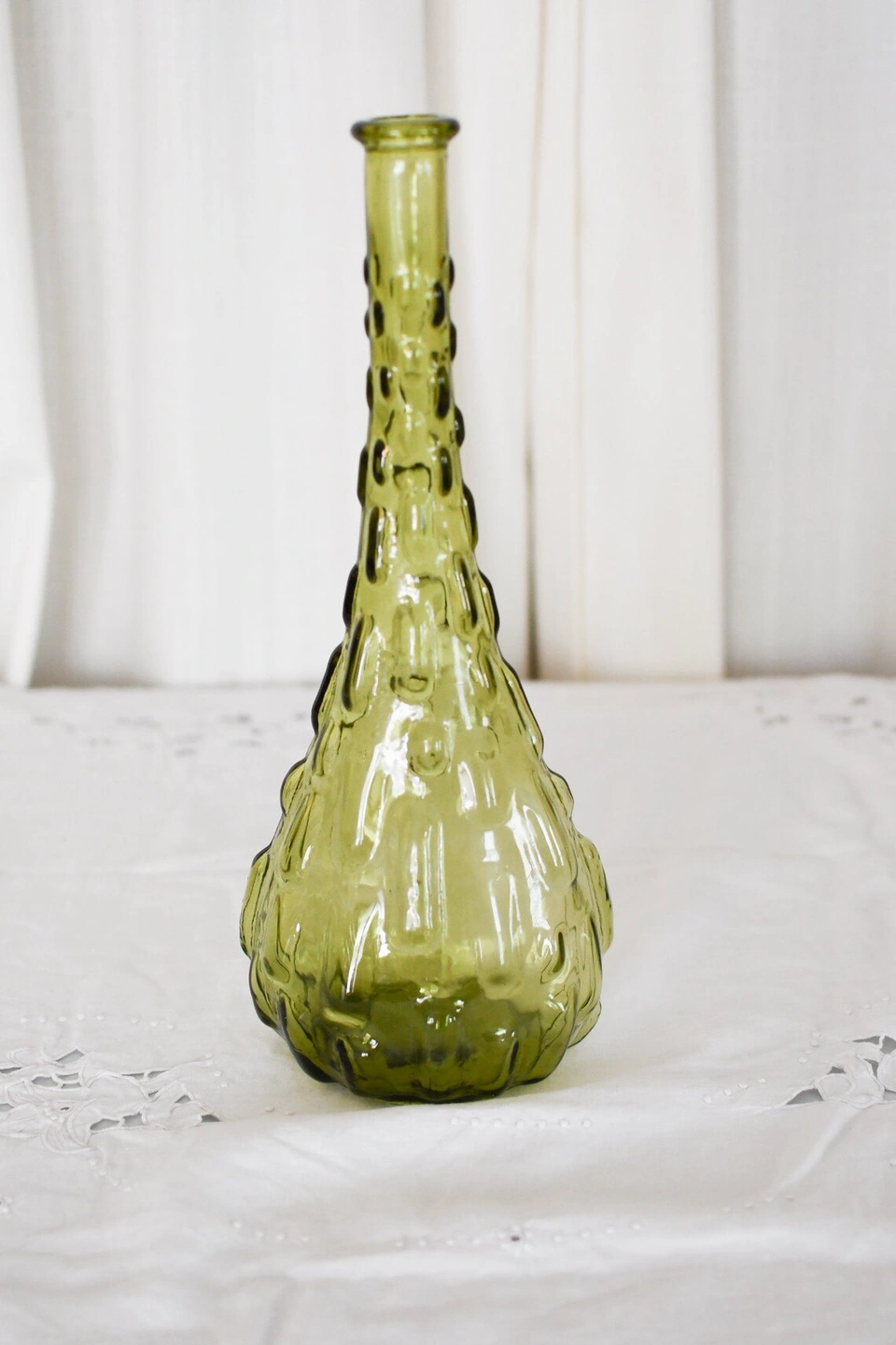 Embrace the vintage charm of the Empoli Italian Glass Genie Bottle in Avocado Green.