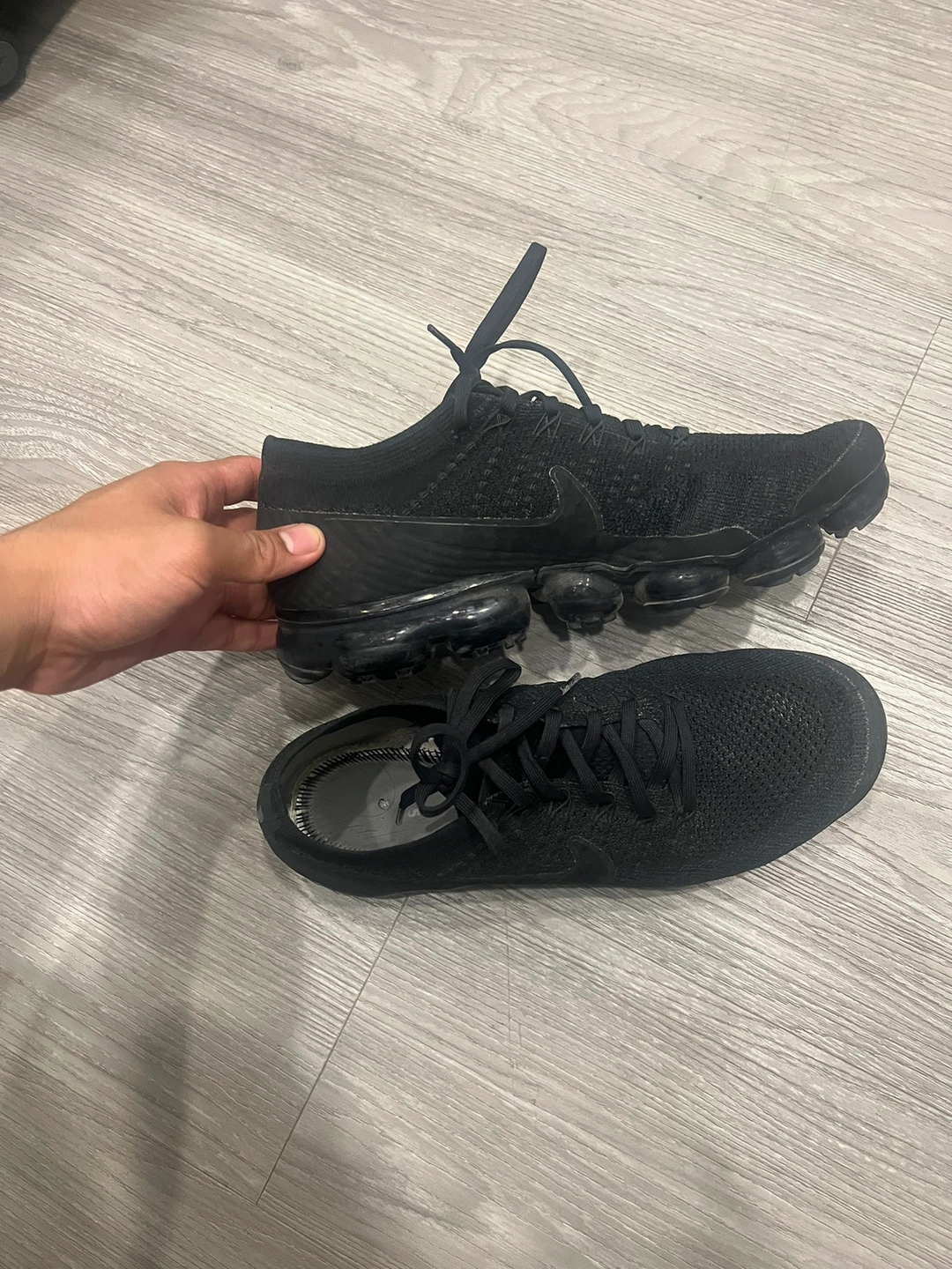 Men's size 9,5 black running shoes. These are a great shoe for running, walking, or everyday wear. Minus the is hole and no insole