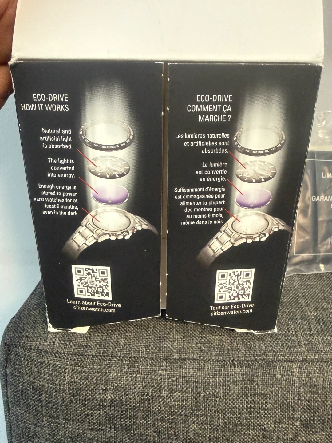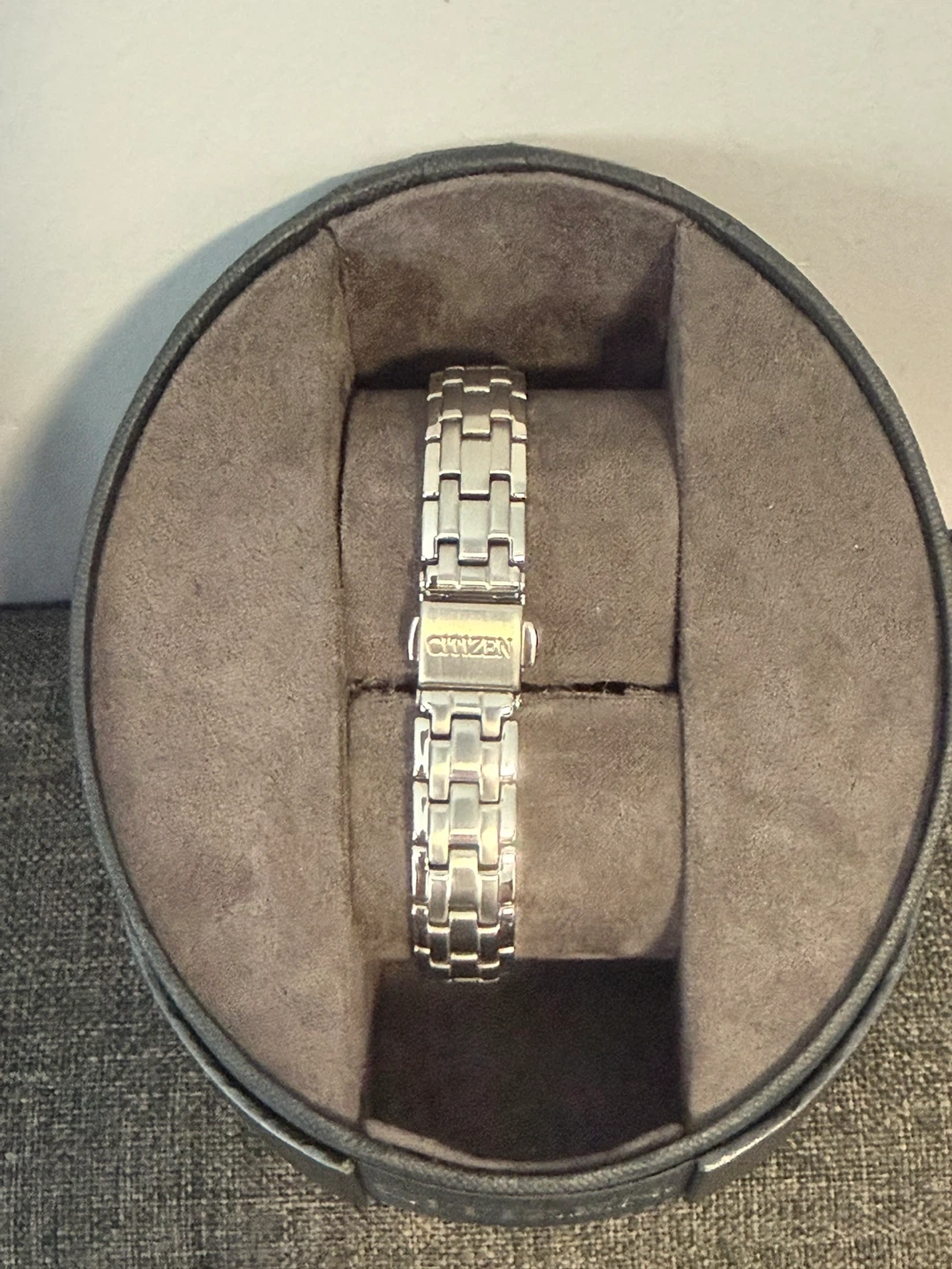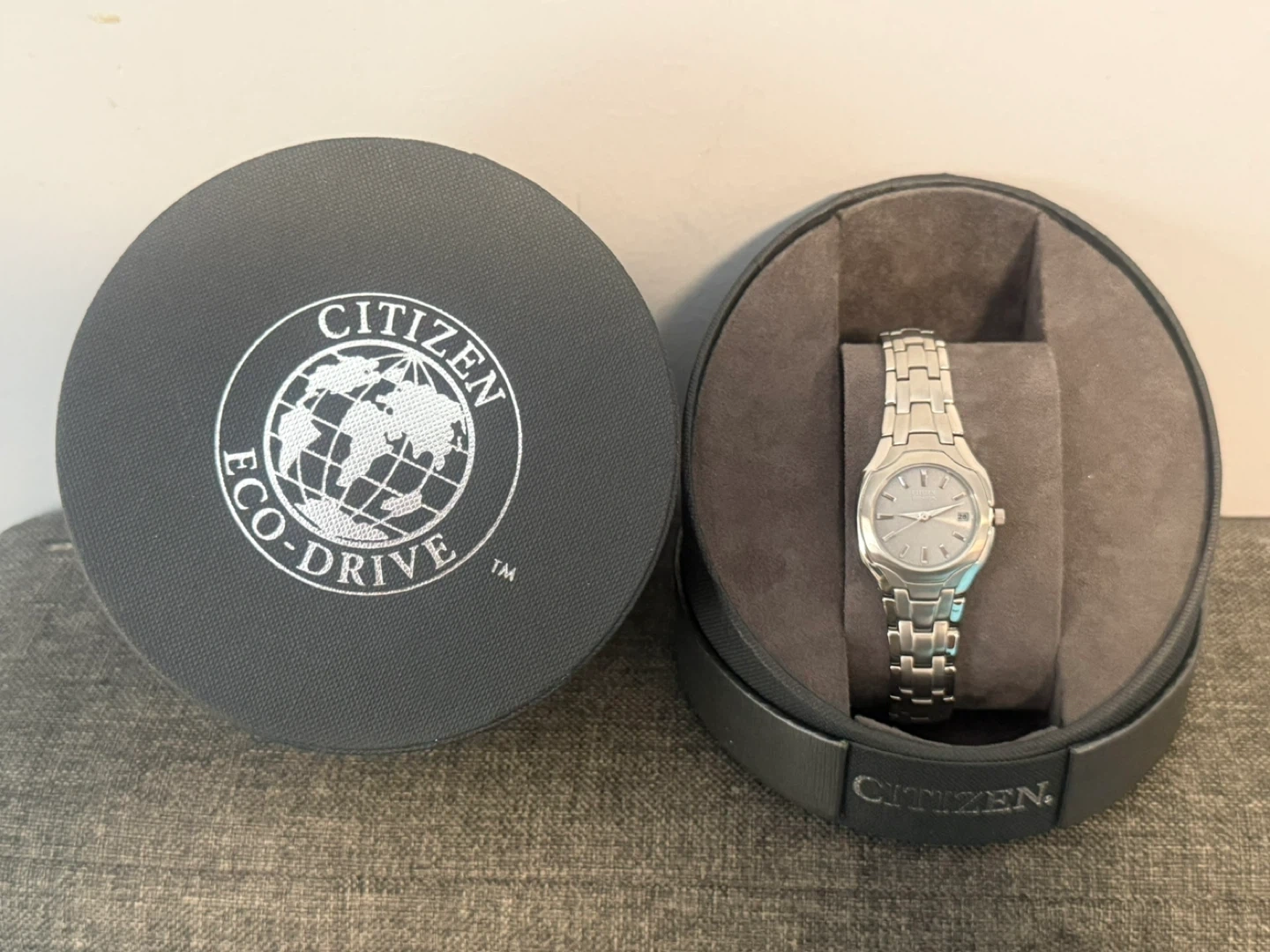 Make an offer……. (Also have the matching one for men) This is a Citizen Eco-Drive watch with a stainless steel band. It comes with its original box and packaging. The Eco-Drive technology absorbs natural and artificial light for power.