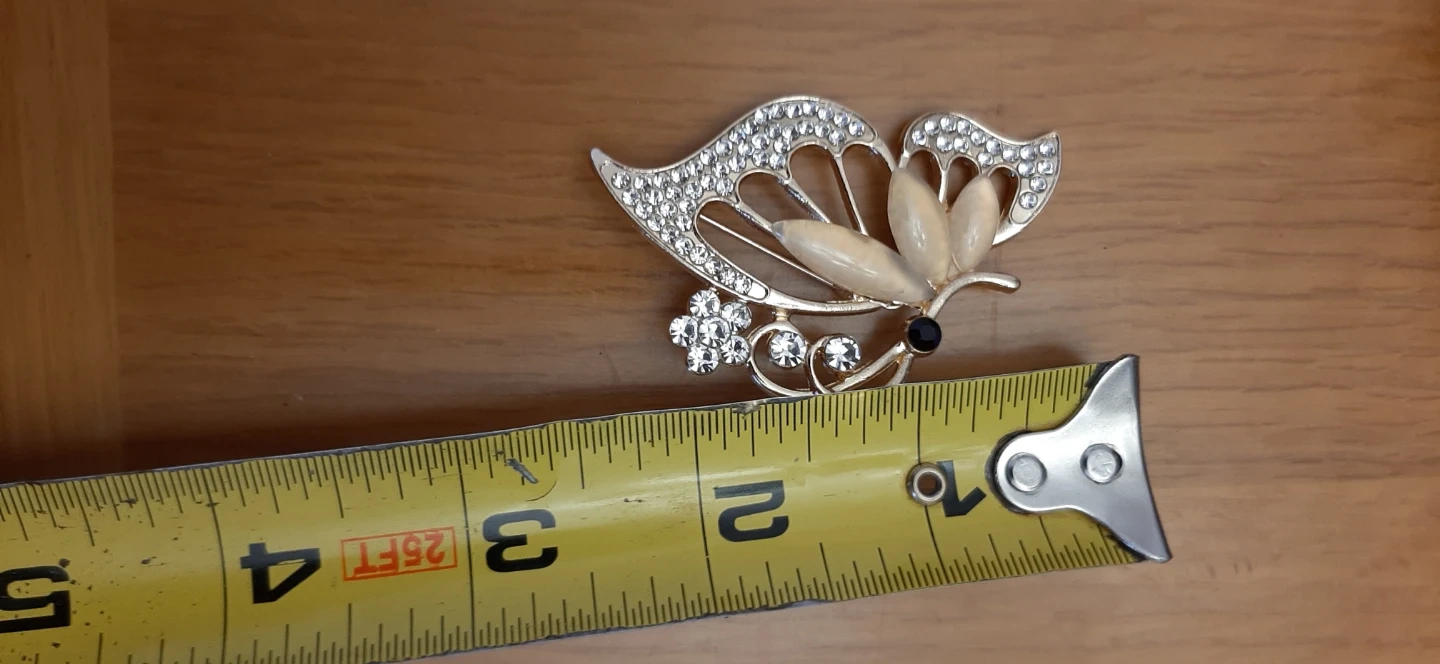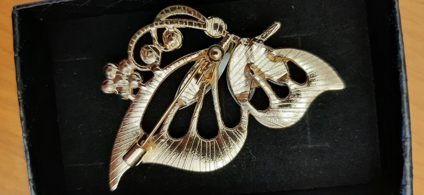 Gold Tone Rhinestone Butterfly Brooch Pin