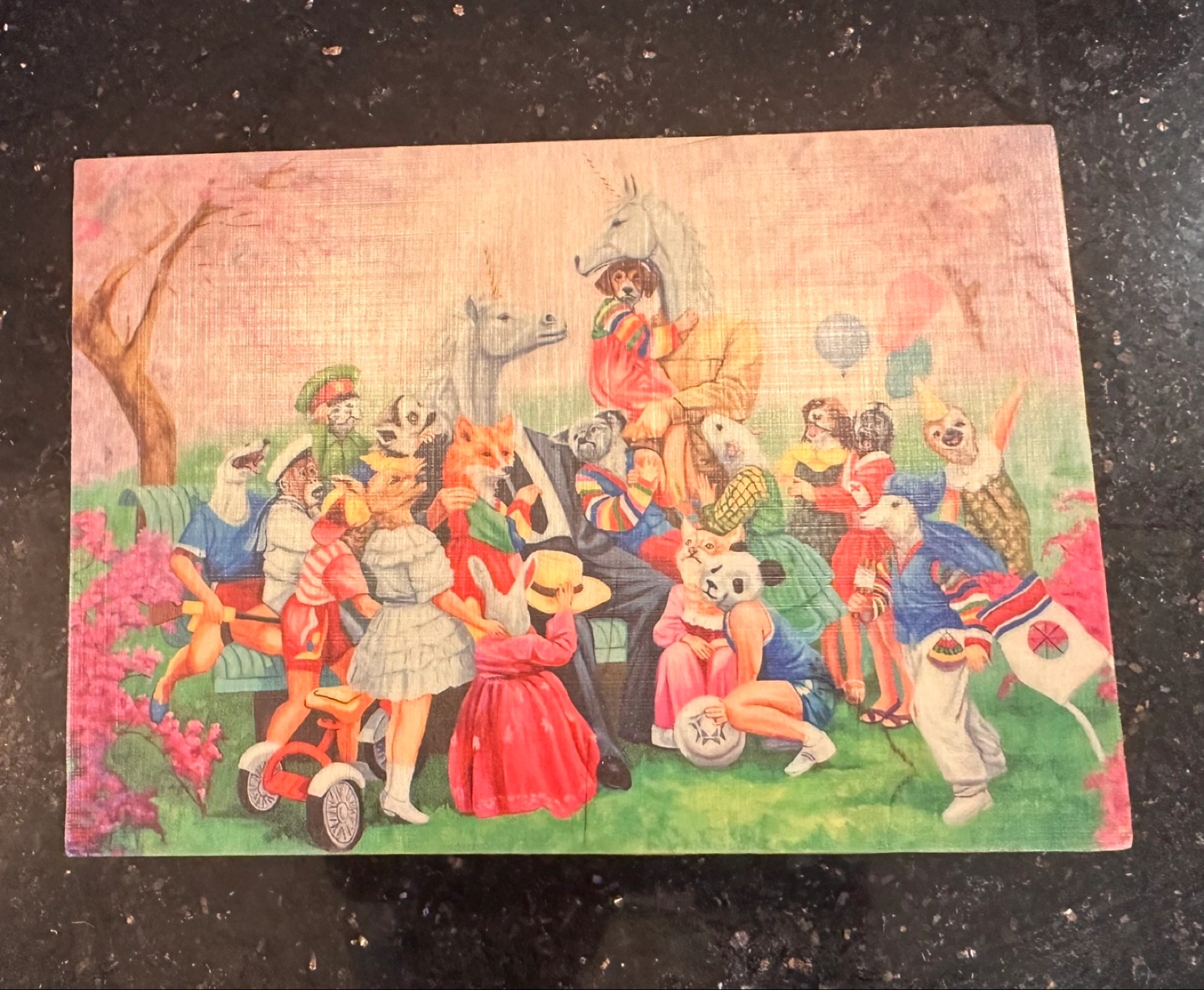 Features whimsical artwork. Animals and unicorns.