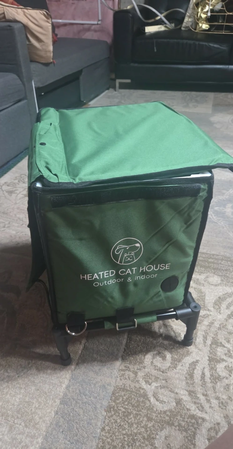 This heated cat house is designed for both outdoor and indoor use. It's made of durable material to keep your feline friend cozy. The heated feature provides extra warmth during colder months.