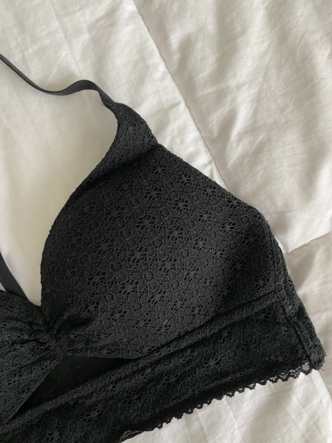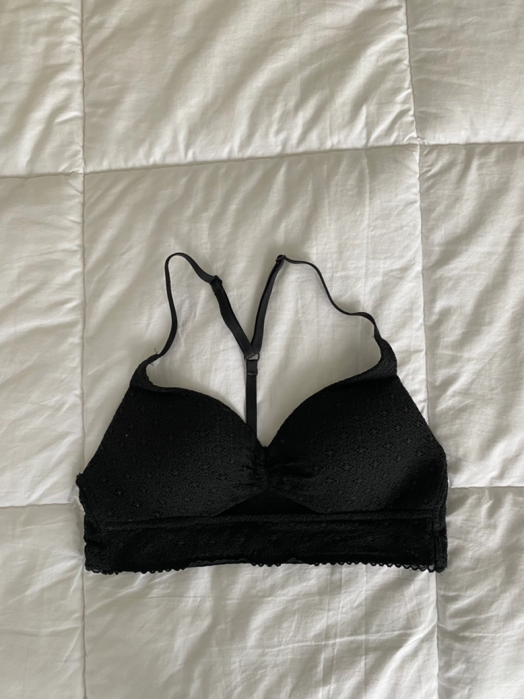 Black lace padded bra. Adjustable straps, racer back and keyhole cutout. Only wore a few times.