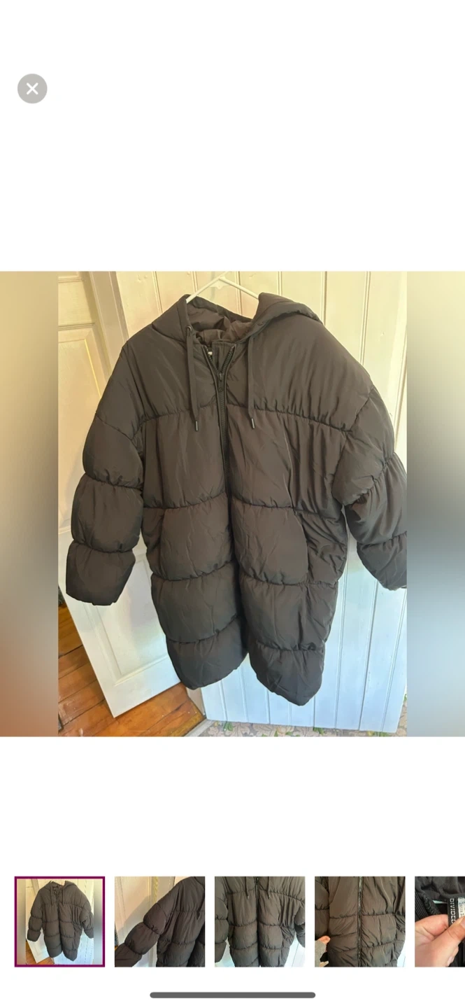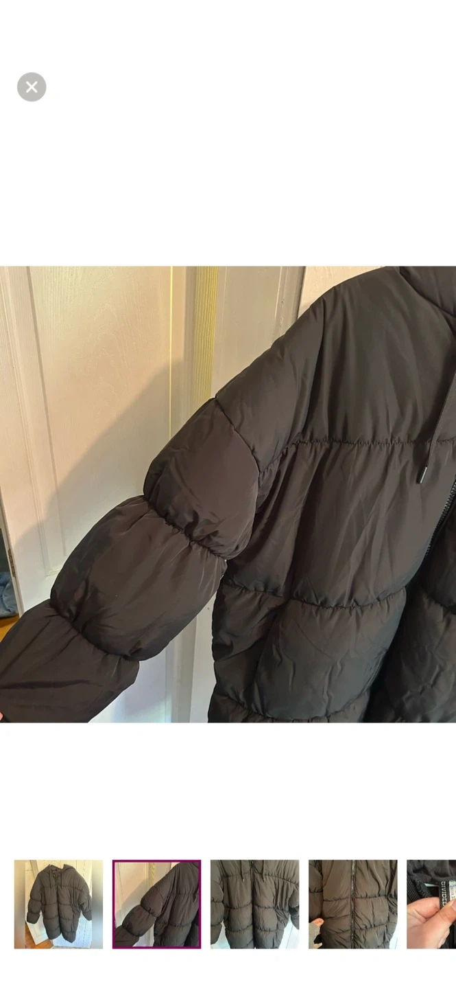 Divided brand for H&M. Knee length zip up puffer winter jacket. Black in colour. Size large. Brand new condition