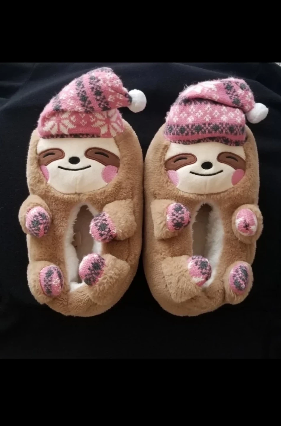 Cozy,Soft and Warm Sloth Slippers wearing a cute Christmas Hat.Perfect for our ever changing Toronto weather