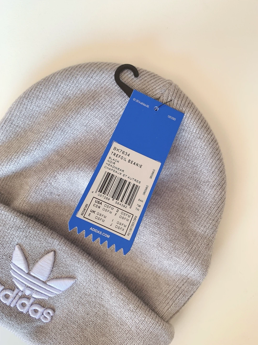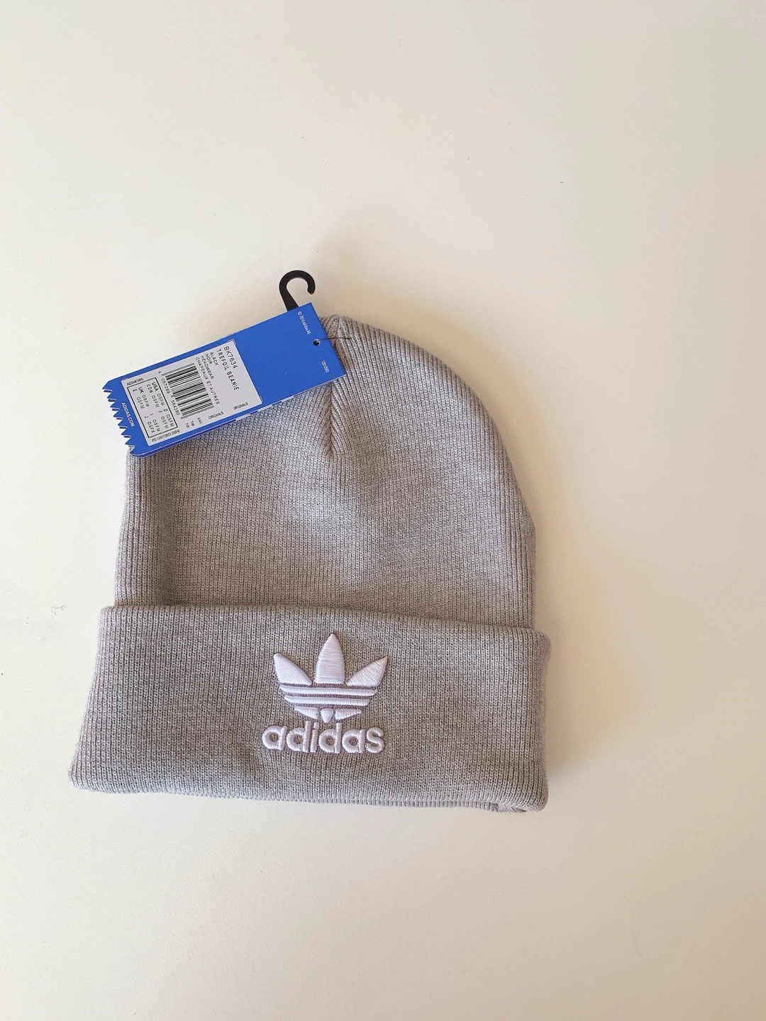 Brand new Adidas Originals Trefoil beanie in light grey.