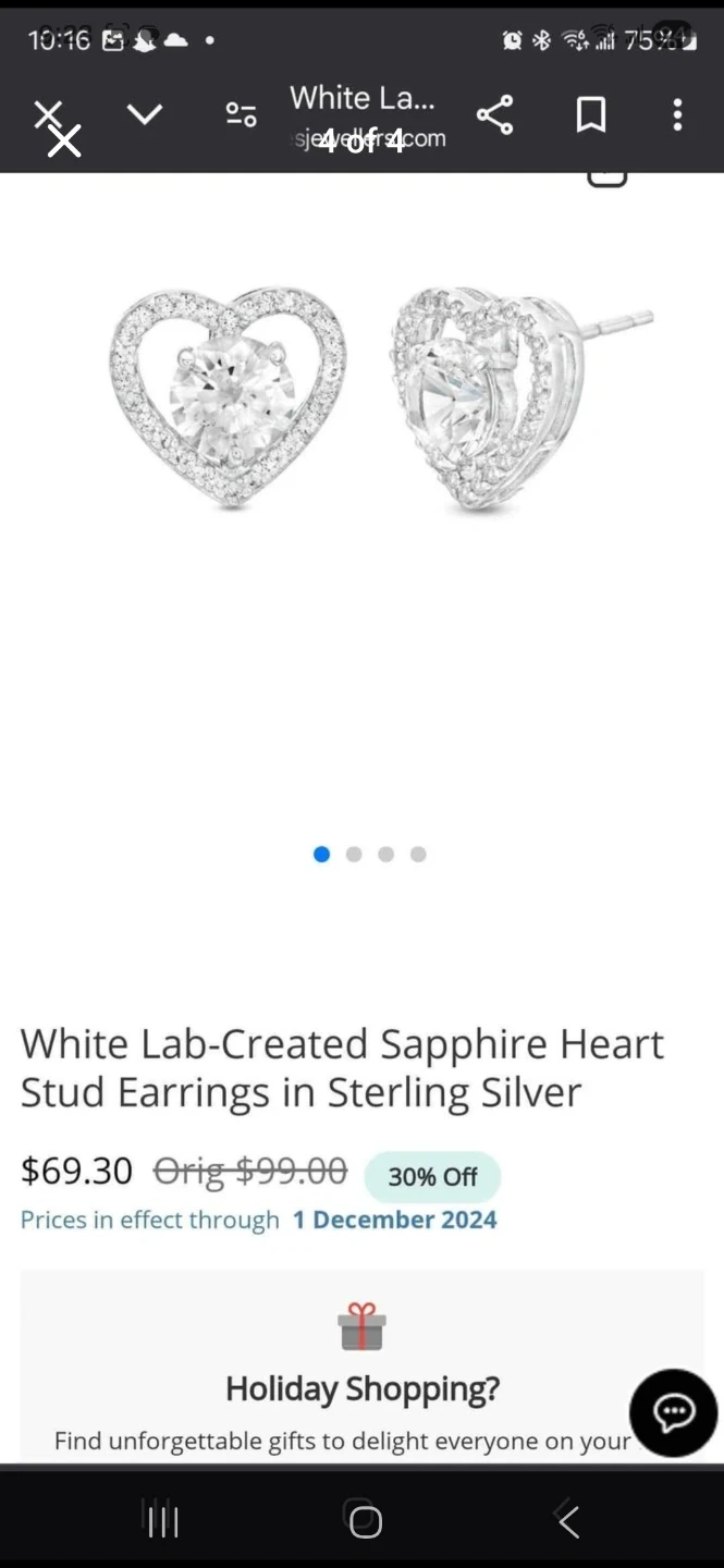 Selling a lovely set of White Lab-Created Sapphire Heart Stud Earrings in sterling silver. They come with a box! Originally priced at $99.00 but selling for less. The prices are in effect through 2024 December 1