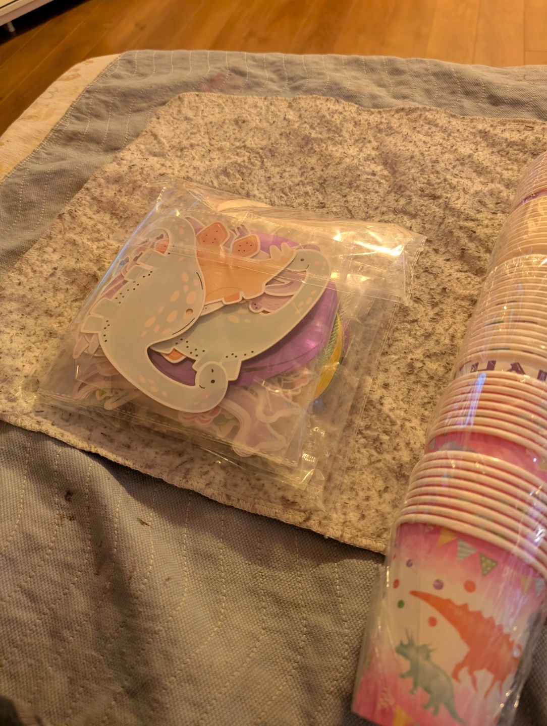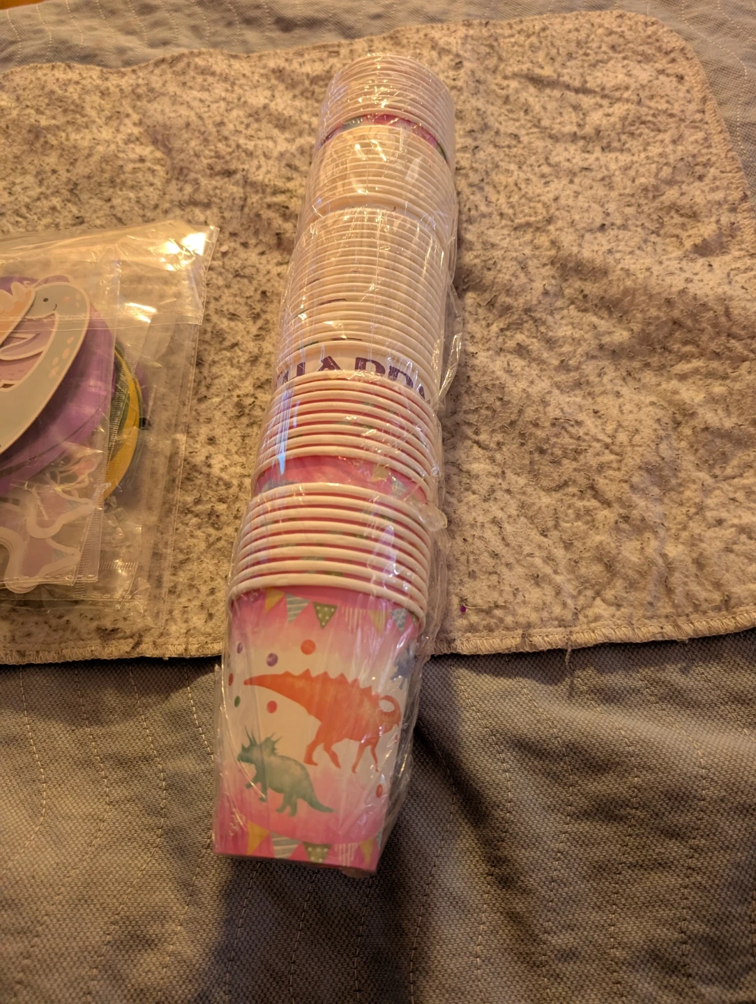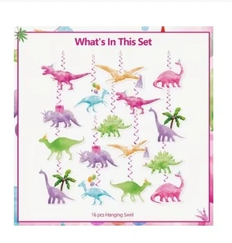 Set of 44 dinosaur hanging swirl decorations for parties. Includes matching dinosaur-themed paper cups there are 51 cups . Perfect for a kid's birthday celebration!