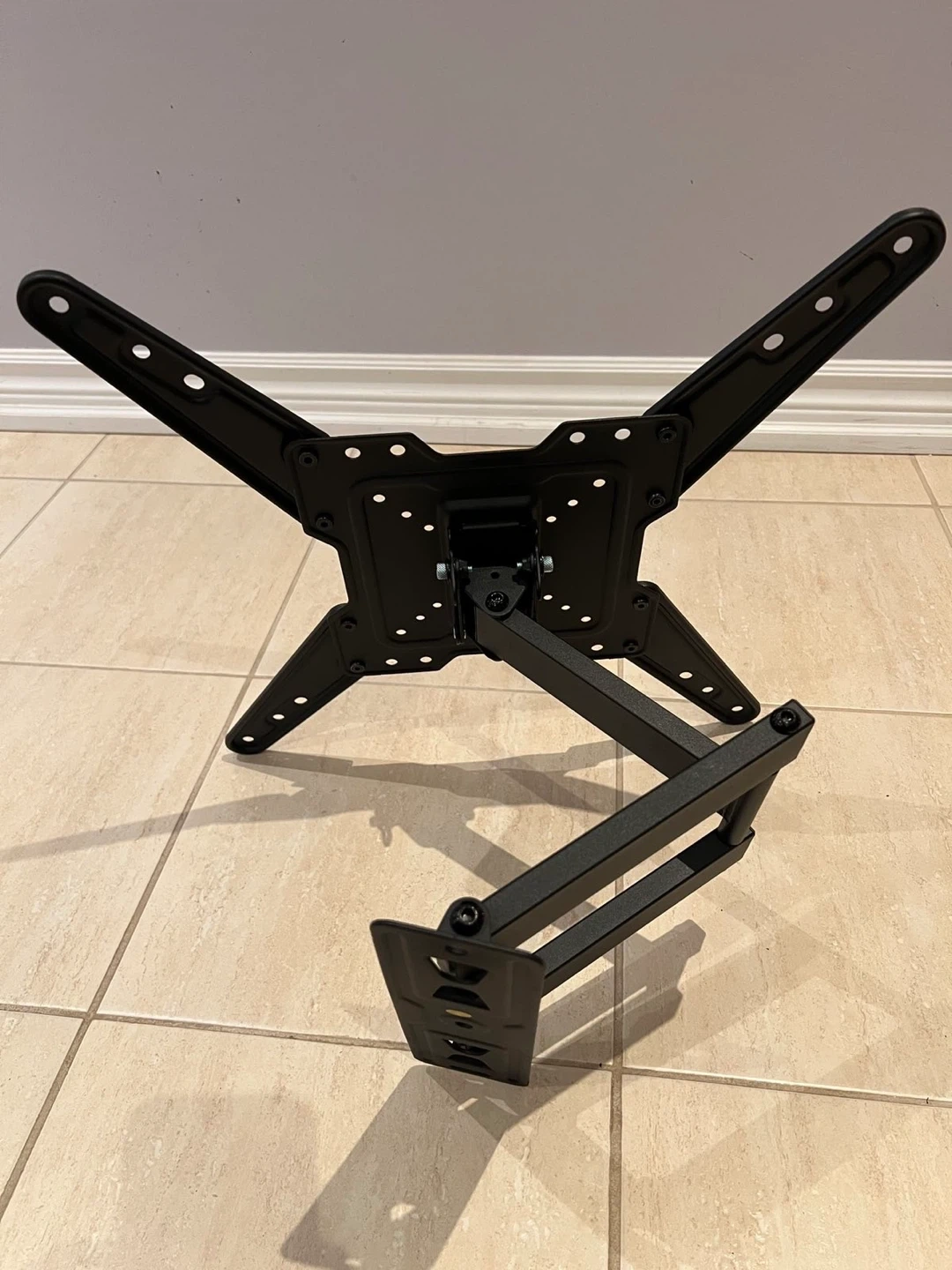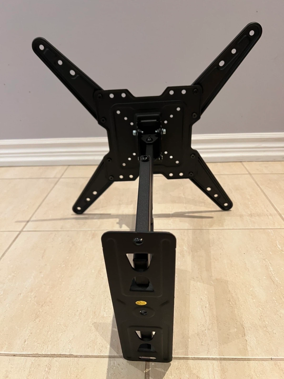 This black TV wall mount is from Mounting Dream. It includes all necessary hardware for installation, conveniently packaged. This mount is suitable for most TVs and offers adjustable positioning.