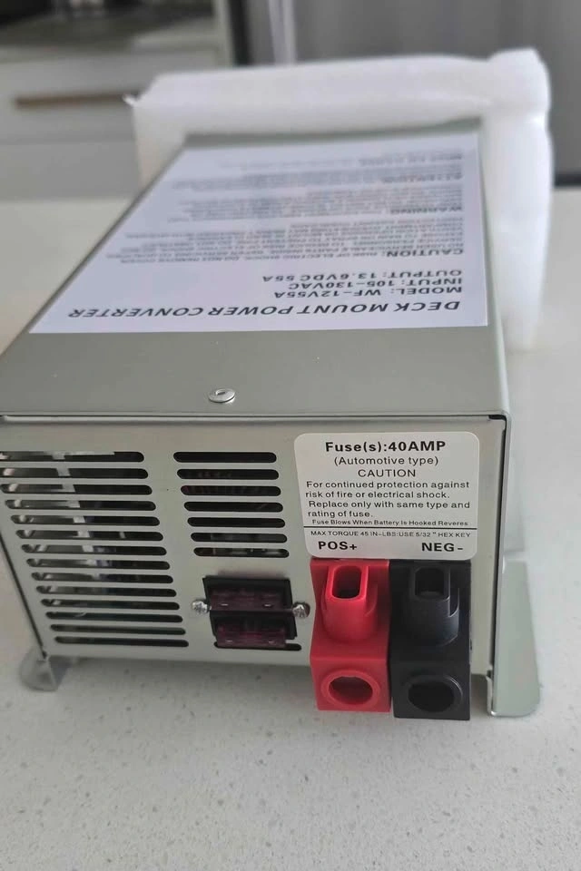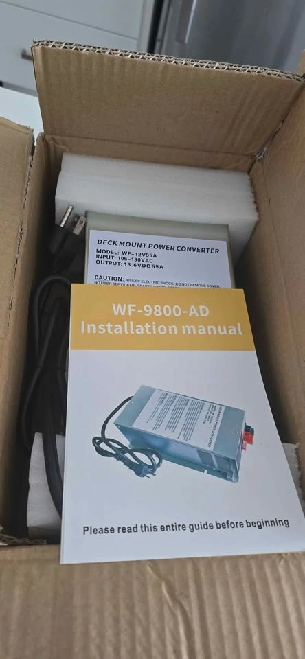 WF-9855 55 Amp RV Power Converter. Deck Mount Three-Stage Power Converter Charger Replacement for 9800 Series. Fits Camper RV Trailer WF-9855-MBA, WF-9855-AD-MBA, WF-9855AN. Pickup in Oakville.