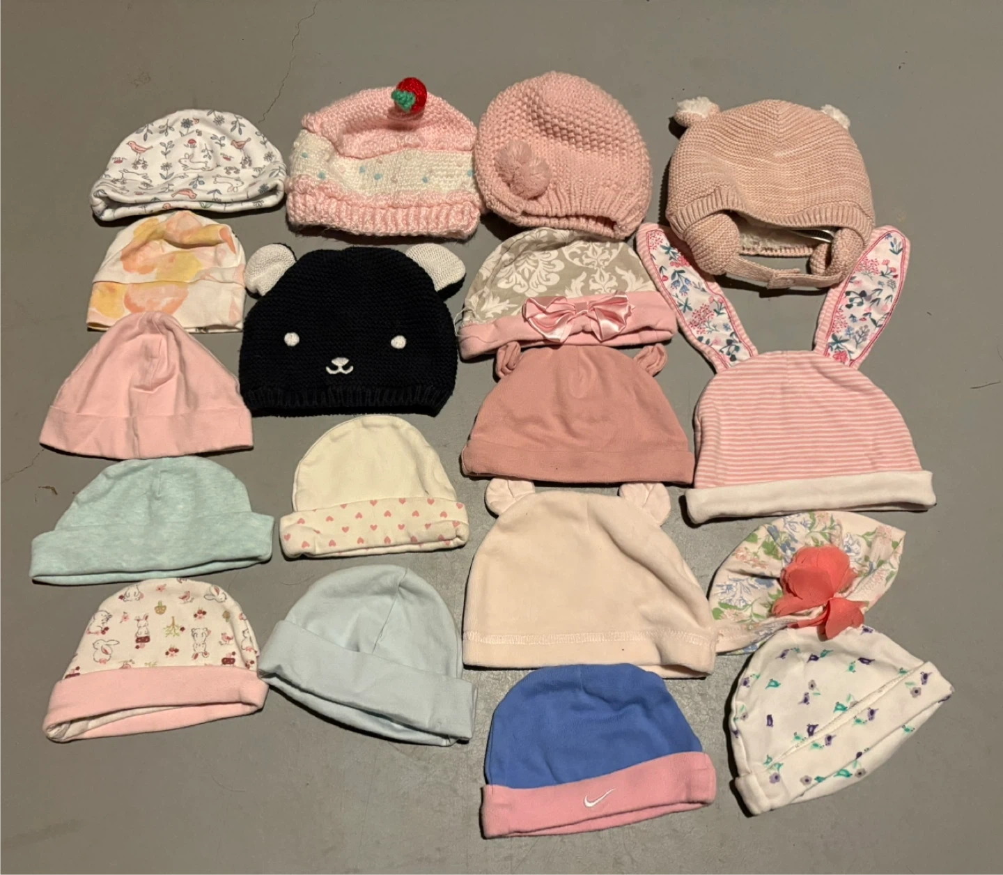 Multiples of winter hats, sleep/daily baby hats, and multiple different colours to match literally any little outfit!