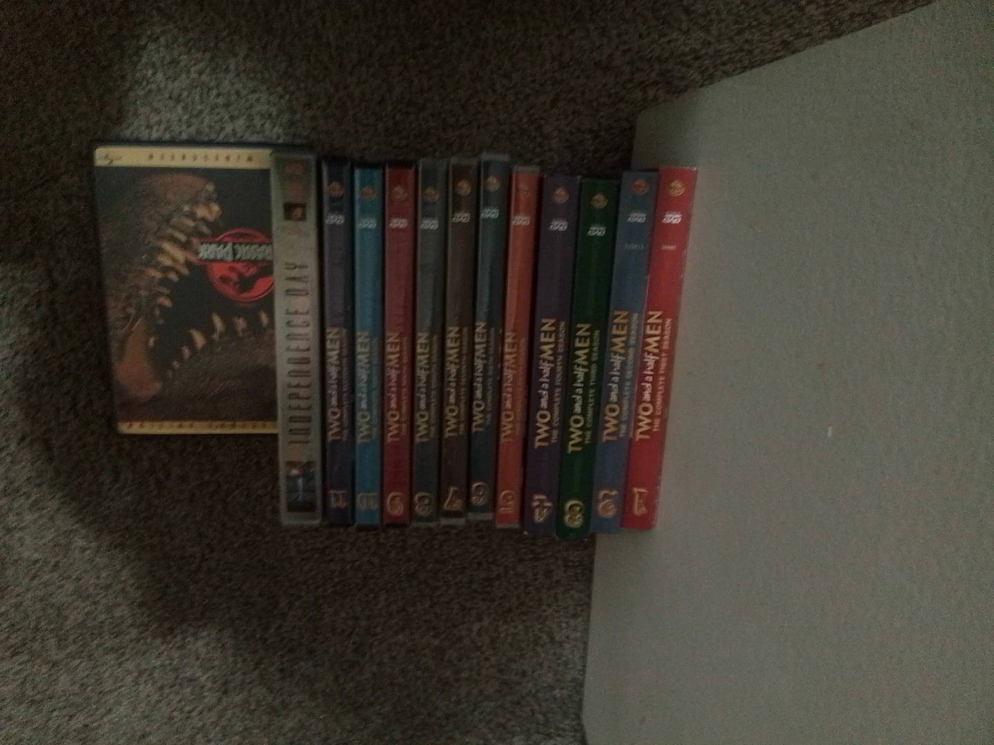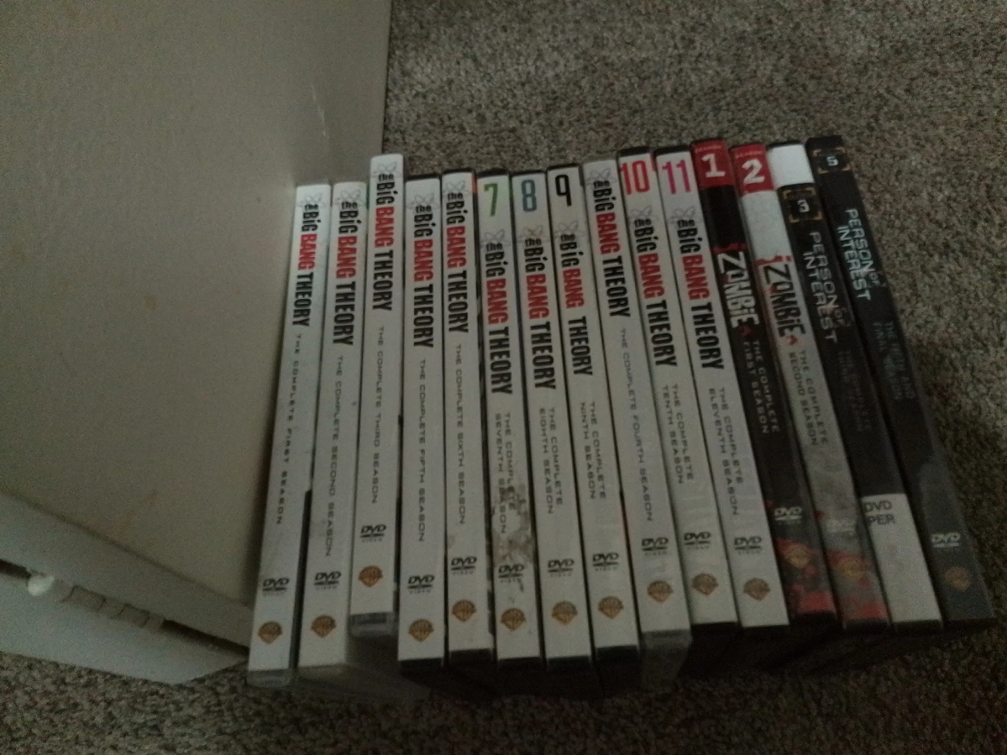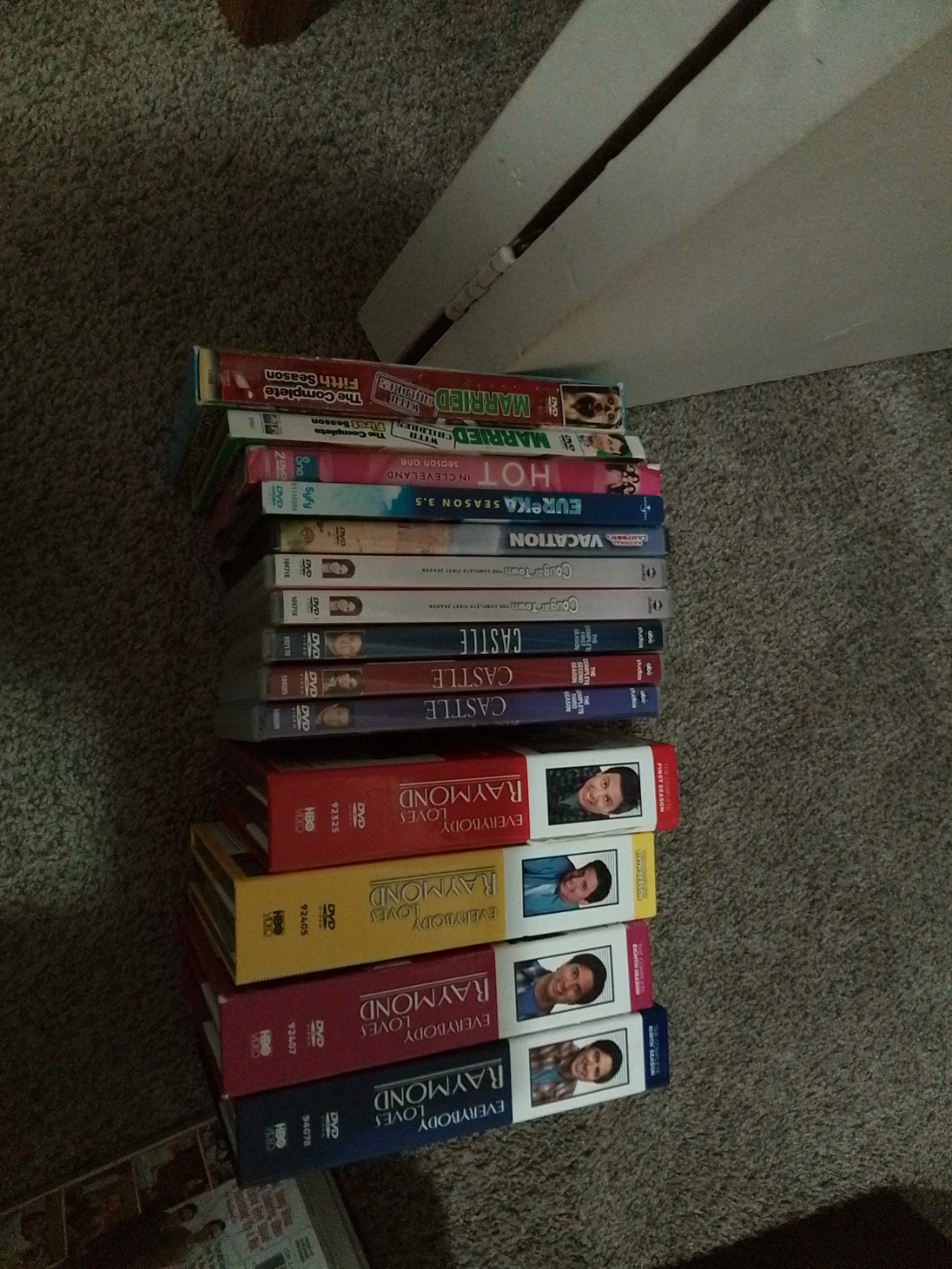 Selling a collection of DVDs including "Independence Day", "Two and a Half Men" complete seasons, "Supernatural" seasons 1-5, "Sanctuary" seasons 1-3, "Firefly" complete series, "Criminal Minds" season 1, "Fringe" seasons 1-5, "True Blood" seasons 1-4, "The Big Bang Theory" complete seasons 1-10, "Zombie" seasons 1-2, "Person of Interest" season 1, "Everybody Loves Raymond" seasons 1-5, "Castle" seasons 1-5, "Eureka" season 1, "Vacation" season 1, "Hot in Cleveland" season 1, "Married" season 1. Includes original boxes for many series.