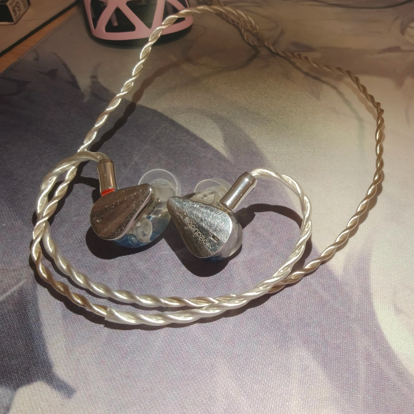 Alot of scratches on both side. It comes with thieaudio est cable 2 pin to 3.5 (can switch to a 4.4mm moondrop cable if you want) and a pair of soft ear eartip. Feel free to ask question