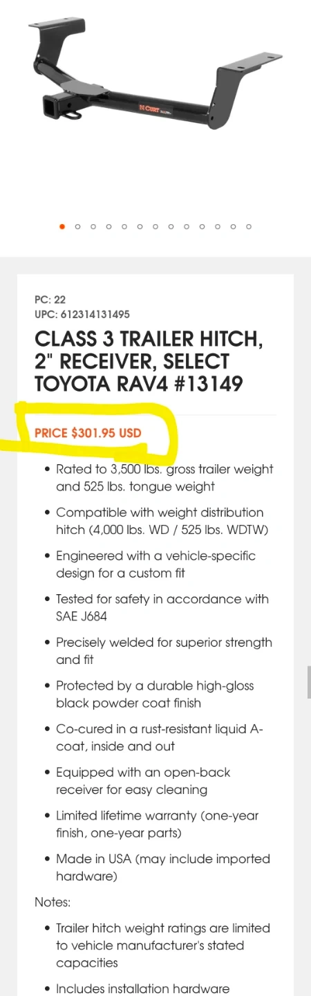 I am selling a Brand New Curt Class 3 Trailer Hitch, designed for Toyota RAV4 models from 2006-2018, providing a reliable 2" receiver for towing. ππͺ