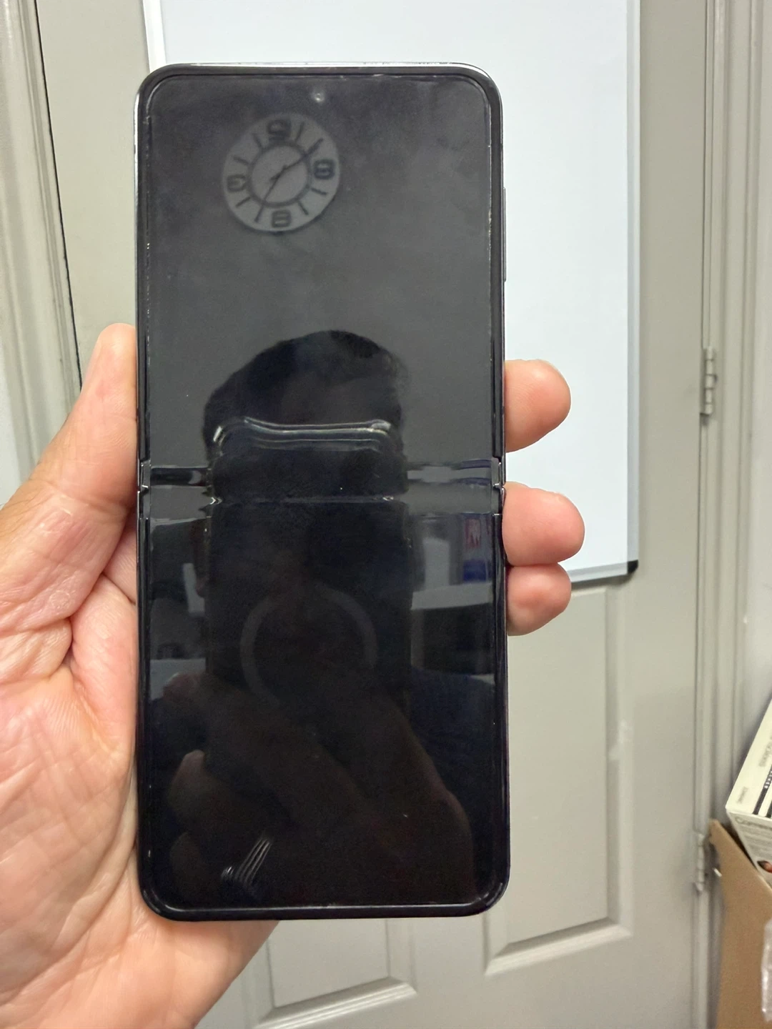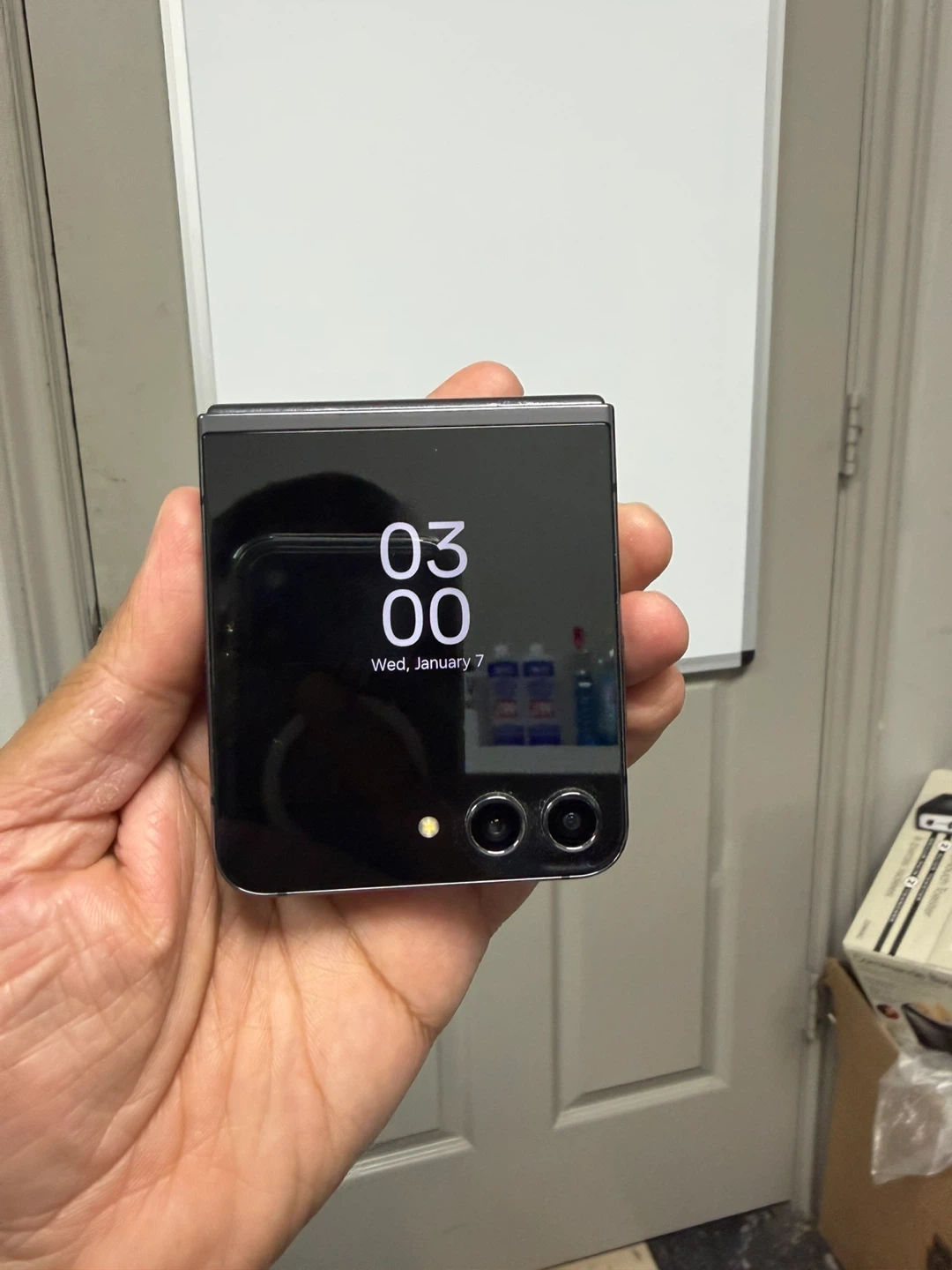 Samsung Galaxy Z Flip 5 5G smartphone. It's a foldable phone with a stylish design. The device features a large foldable display and a compact form factor when closed. It's perfect for those who want a powerful smartphone that fits easily in their pocket!