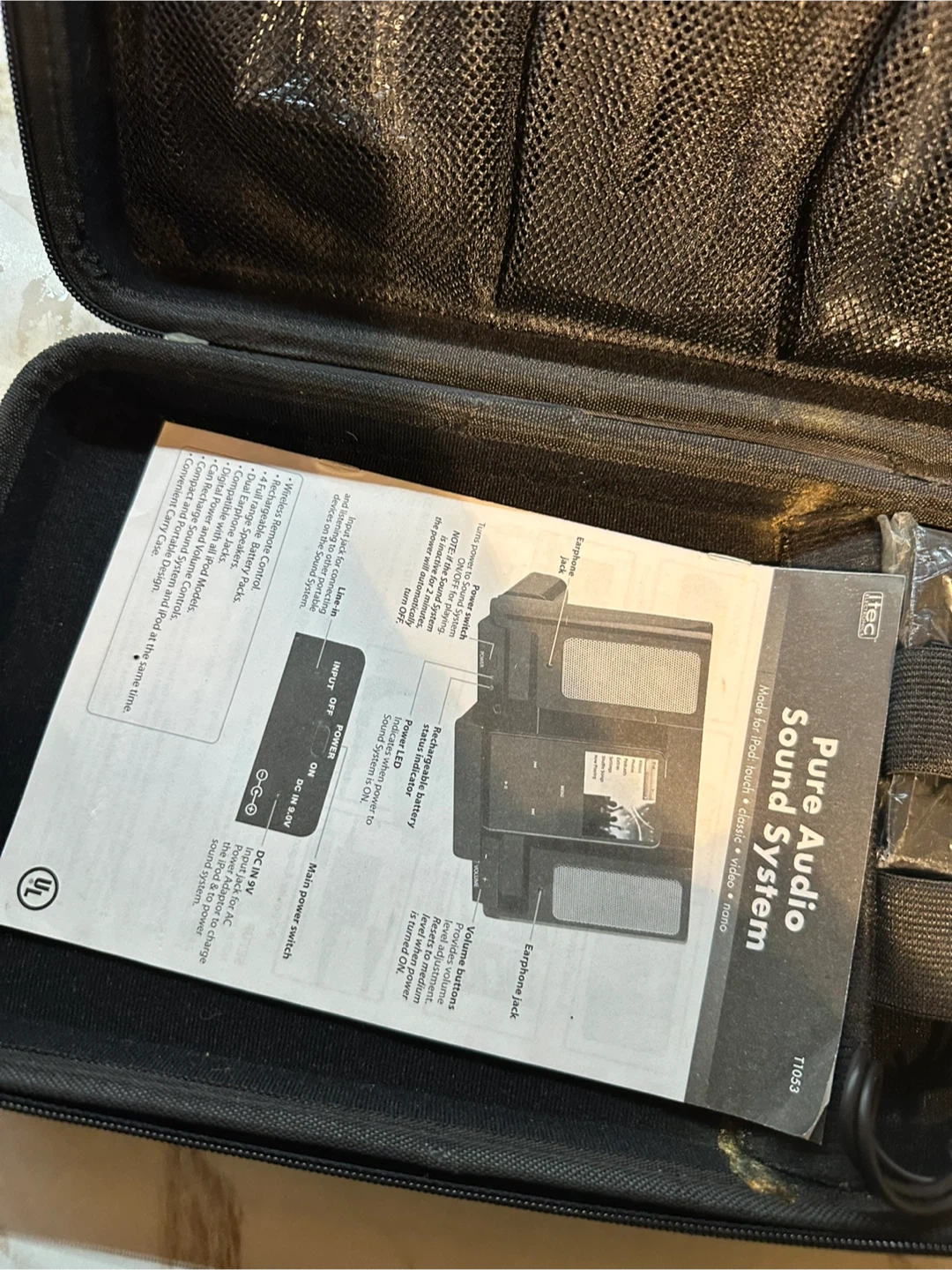This iTEC Pure Audio Sound System is designed for iPods, radio, music, and video playback. It's portable and comes with a protective case. The system features a rechargeable battery and multiple power options.