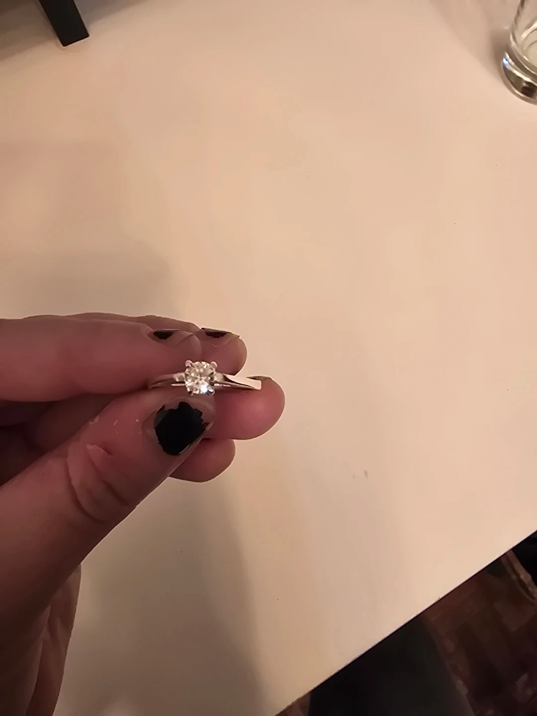 A classic solitaire engagement ring featuring a round brilliant diamond set in a white gold band. It's a timeless piece for a special occasion. Diamond size is approximately 0.75ct.