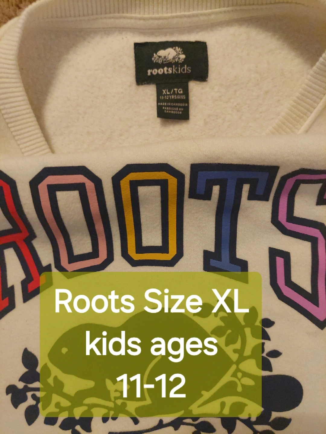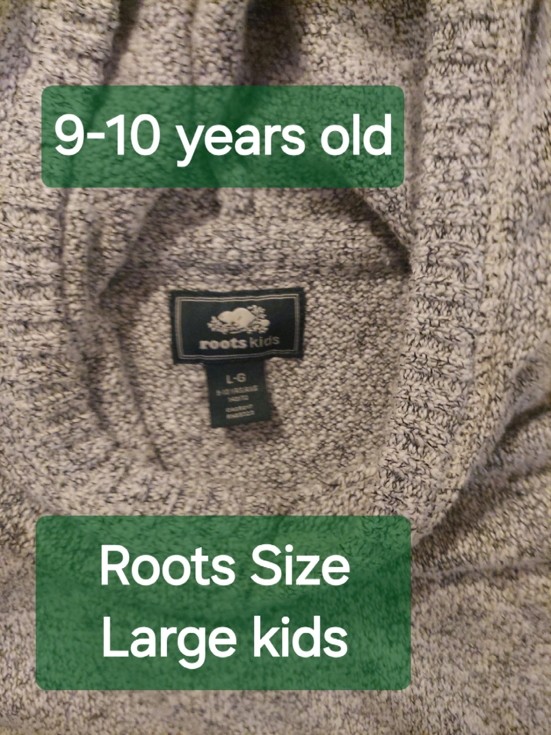 Selling three Roots kids sweatshirts. One is a cream colour with the classic Roots logo, size XL (11-12 yrs). The other is a grey colour with a plaid Roots logo, size L (9-10 yrs). The last one is a hoodie, 🧂 🌶 Grey, size Large. All in Excellent, Like New, condition! $15 each. Better price for all 3.