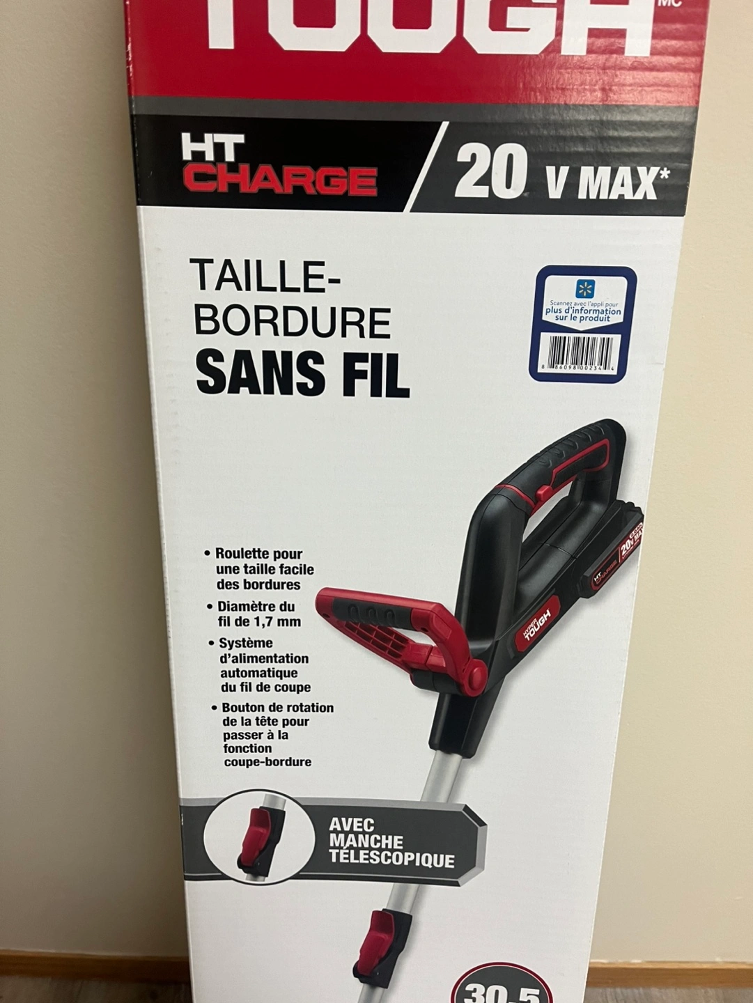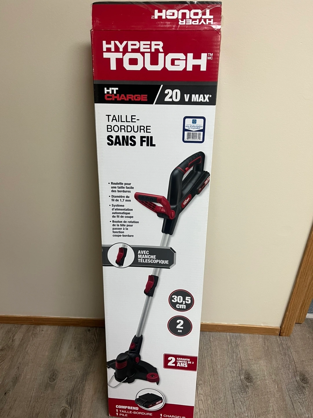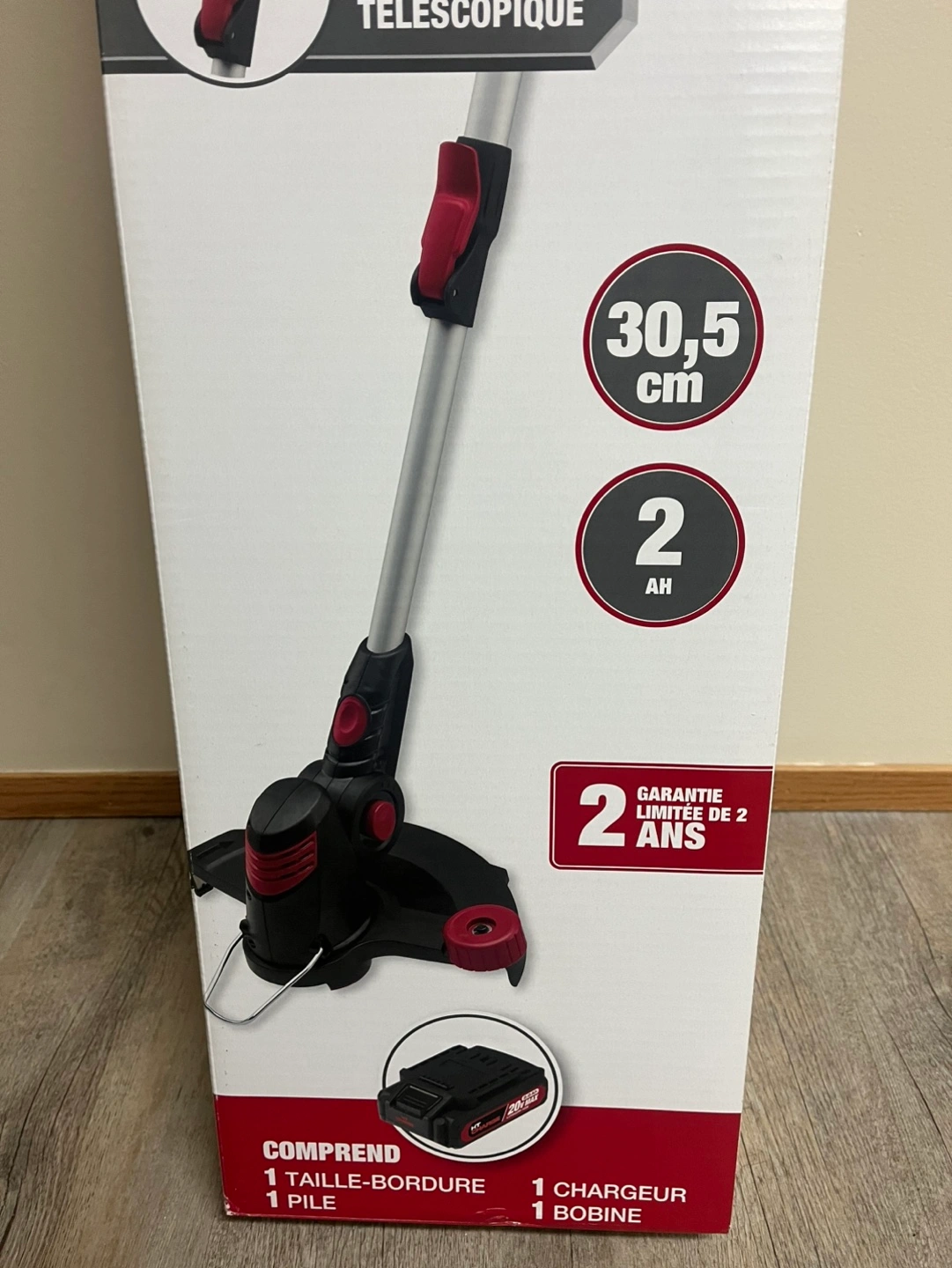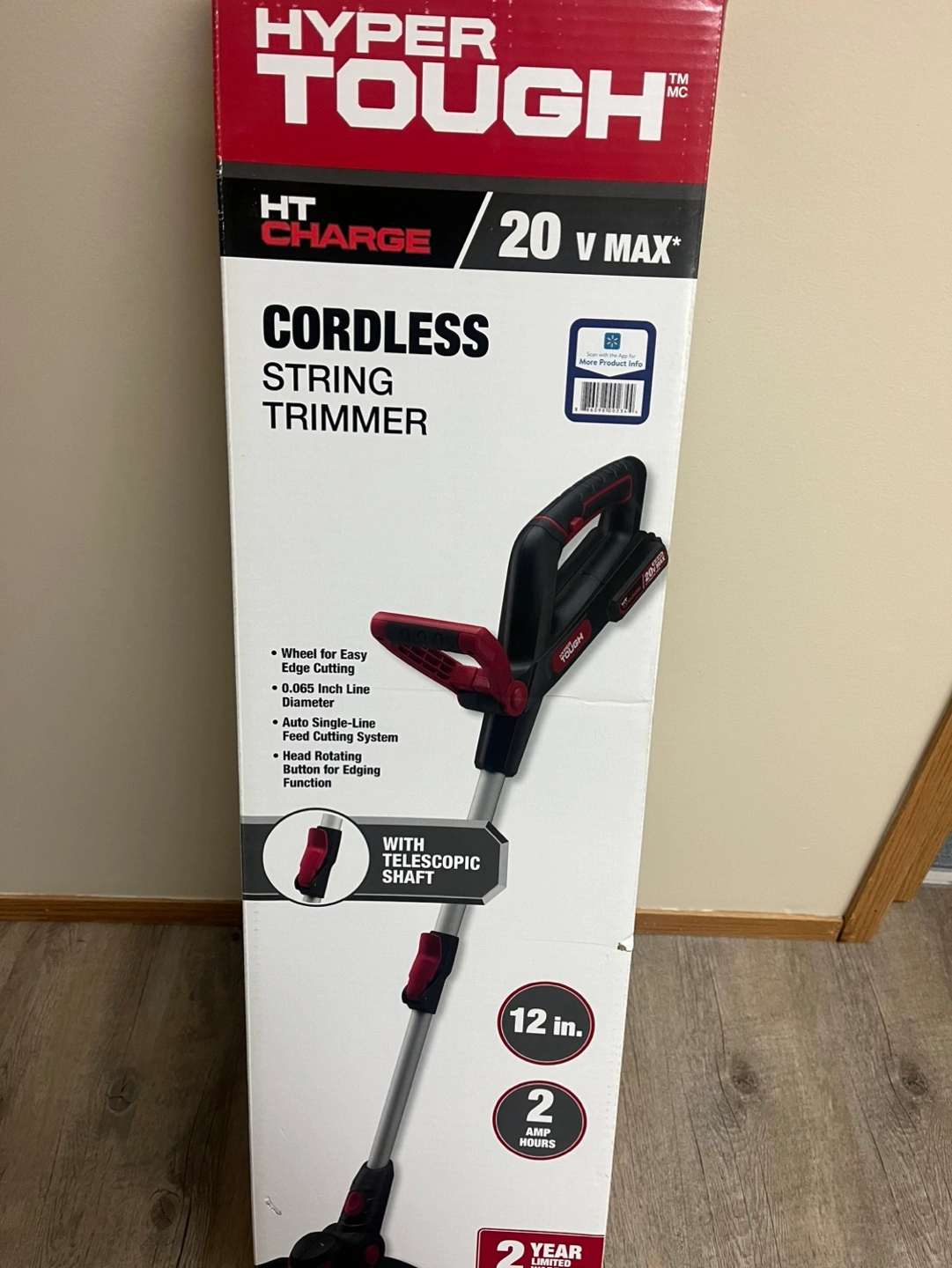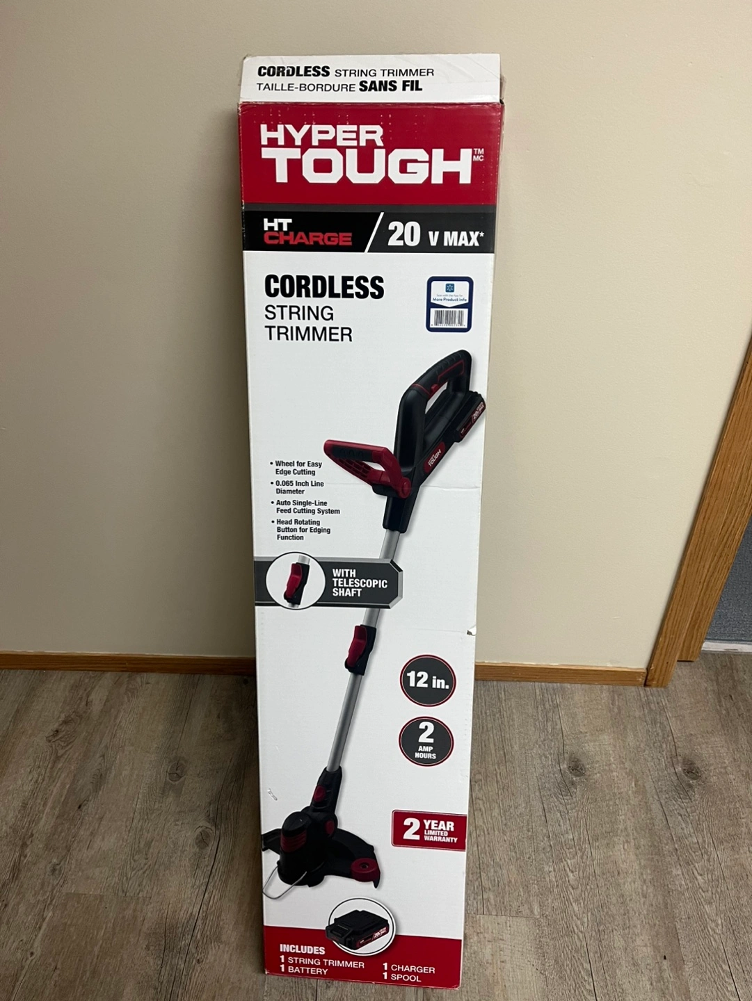 New in box. 20V Max cordless string trimmer. Features a telescopic shaft and 2 amp hour battery. Includes charger and spool of string. 2-year warranty.