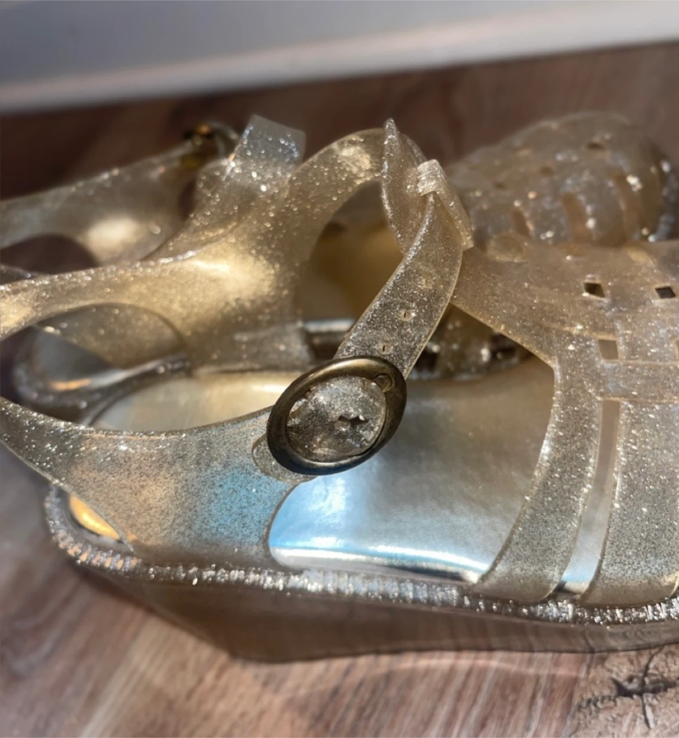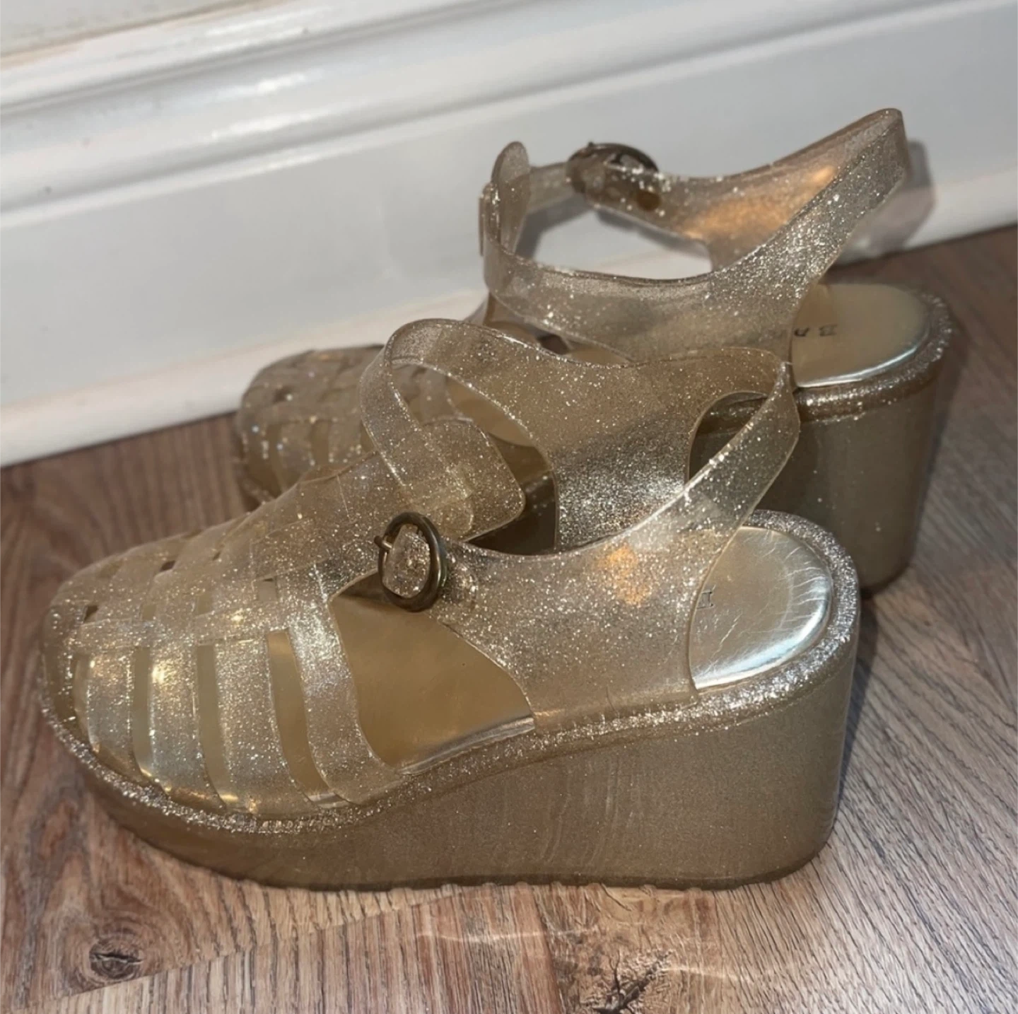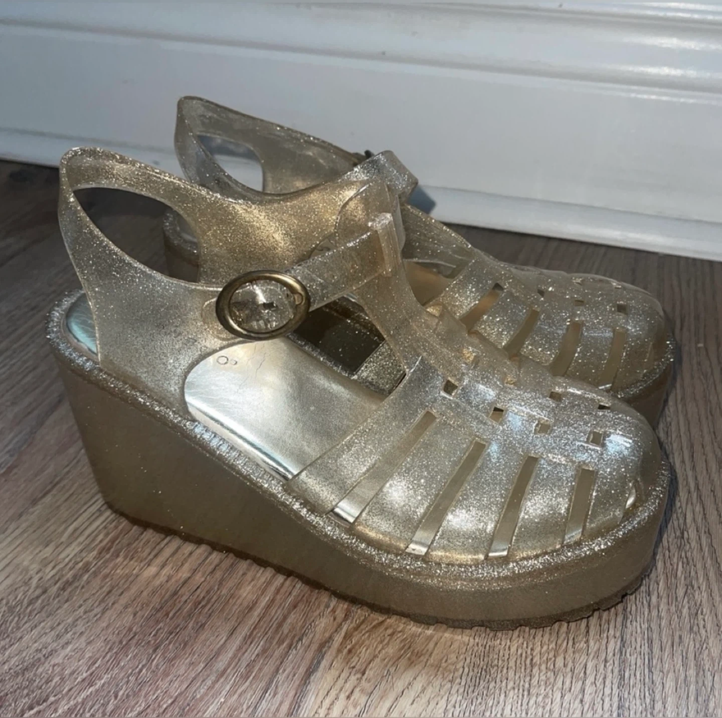 Bamboo Silver/Gold Glitter Platform Jelly Sandals