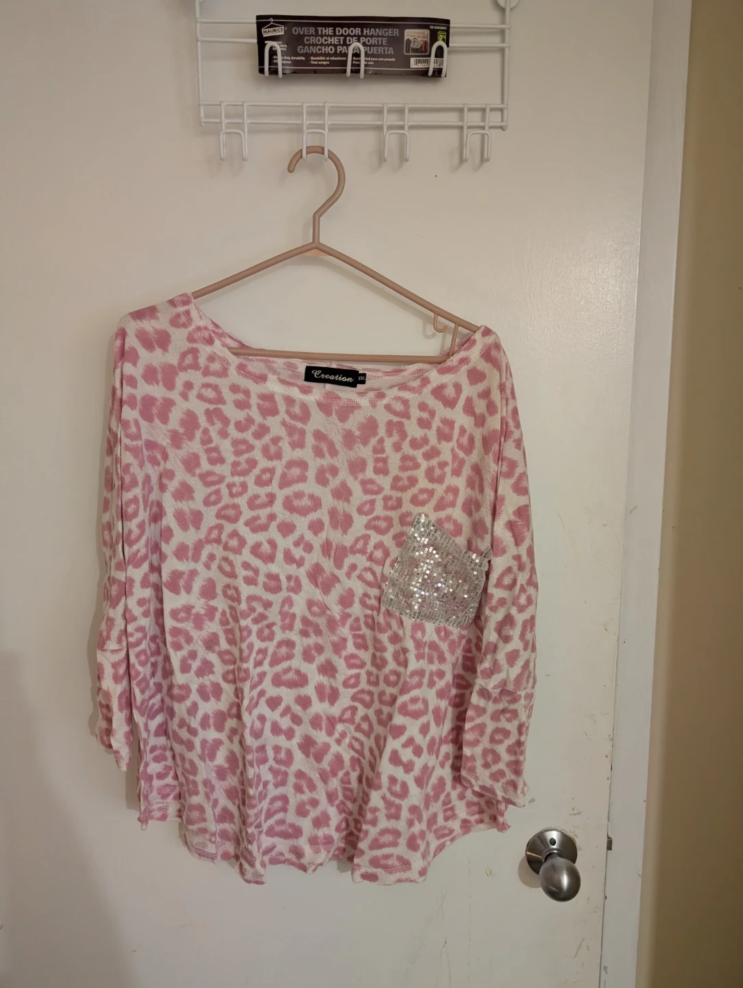 Buy & SellCreation Pink Leopard Print Sweater with Sequined PocketCreation Pink Leopard Print Sweater with Sequined Pocket$10This is a cozy Creation sweater with a fun pink and white leopard print. It features a sparkly sequined pocket on the chest. Size is medium.ConditionLike newWHERE TO MEETCheck LocationView MapSELLERverifiedJoanne DDundas St851 review0 chats·0 favorites·8 viewsSEND CHAT TO SELLERHi Joanne D! I’m interested in your listing.Hi Joanne D! I’m interested in your listing.Get the Karrot app to chatSign In to chat