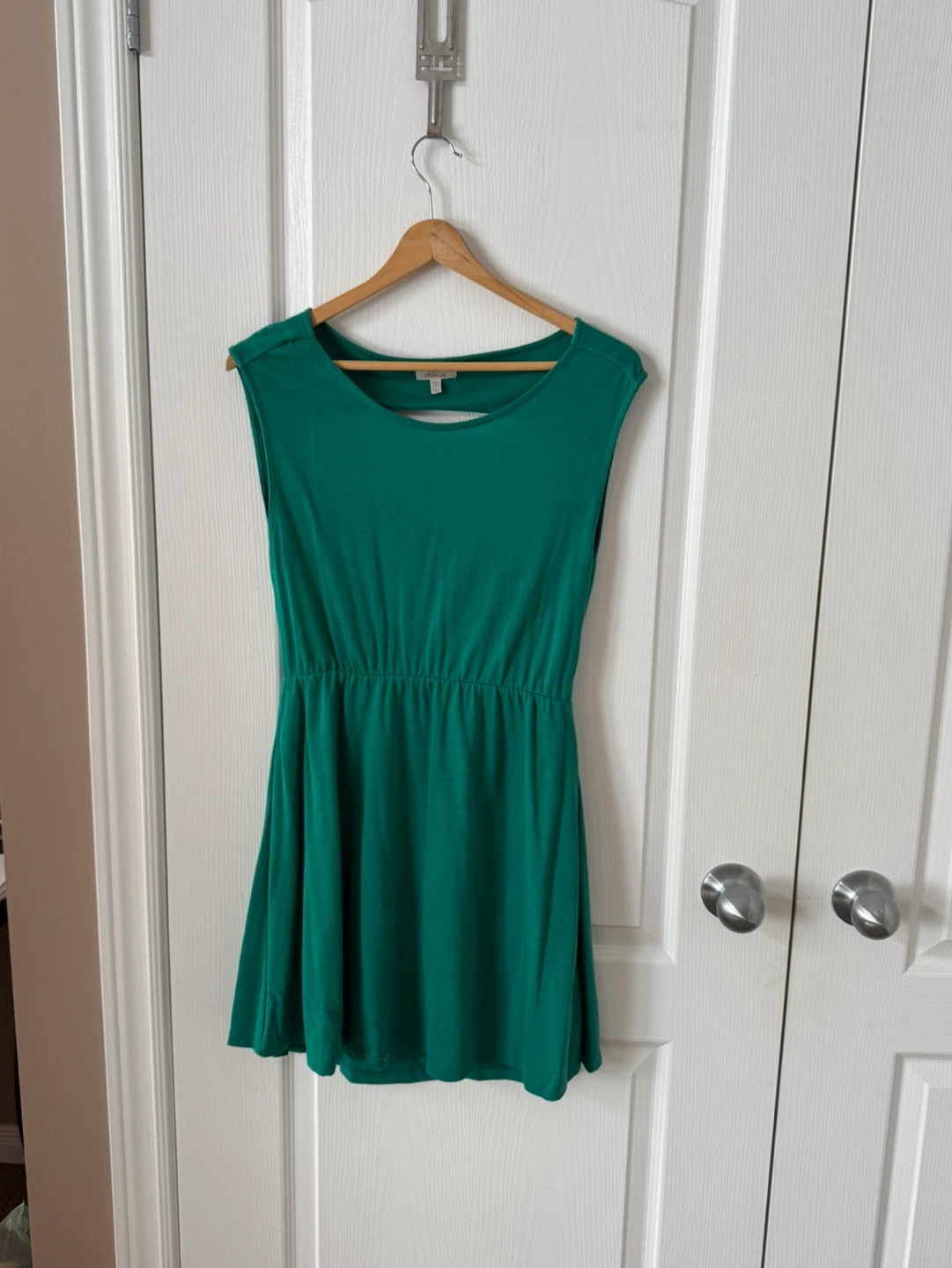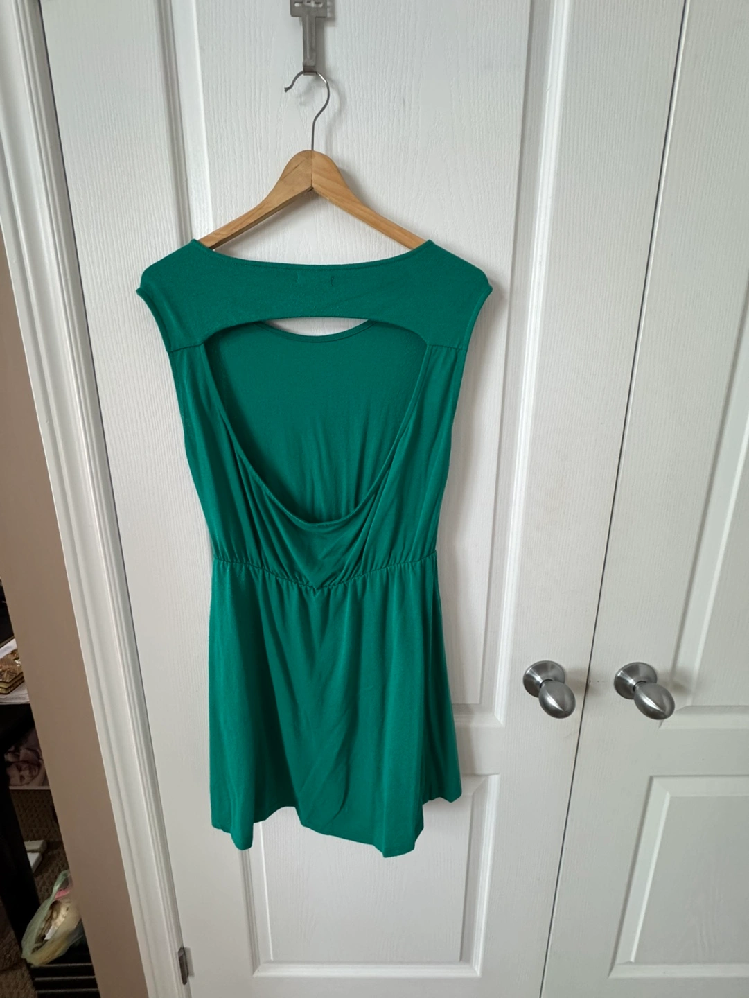 Cute emerald green mini dress. Sleeveless, keyhole back detail. Elastic waist. Great for summer.
