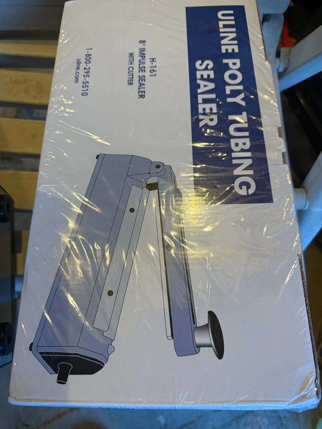 Selling a brand new Uline H-161 8" Impulse Sealer with Cutter! This tabletop sealer is perfect for sealing and trimming poly tubing in one step. It's designed to press gently to seal and has a slide cutter to make exact bags. - 8-step adjustable timer - Replacement Blades and Service Kit with replacement