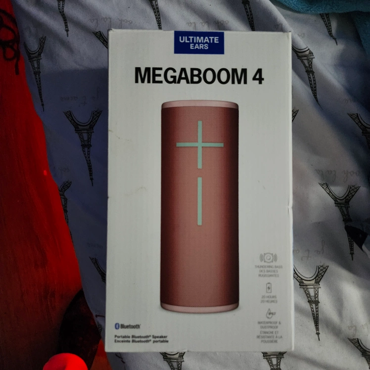 Selling a MEGABOOM 4 portable Bluetooth speaker by Ultimate Ears. It comes with its original box. It features: - Thundering bass - Up to 20 hours of battery life - Waterproof and dustproof design
