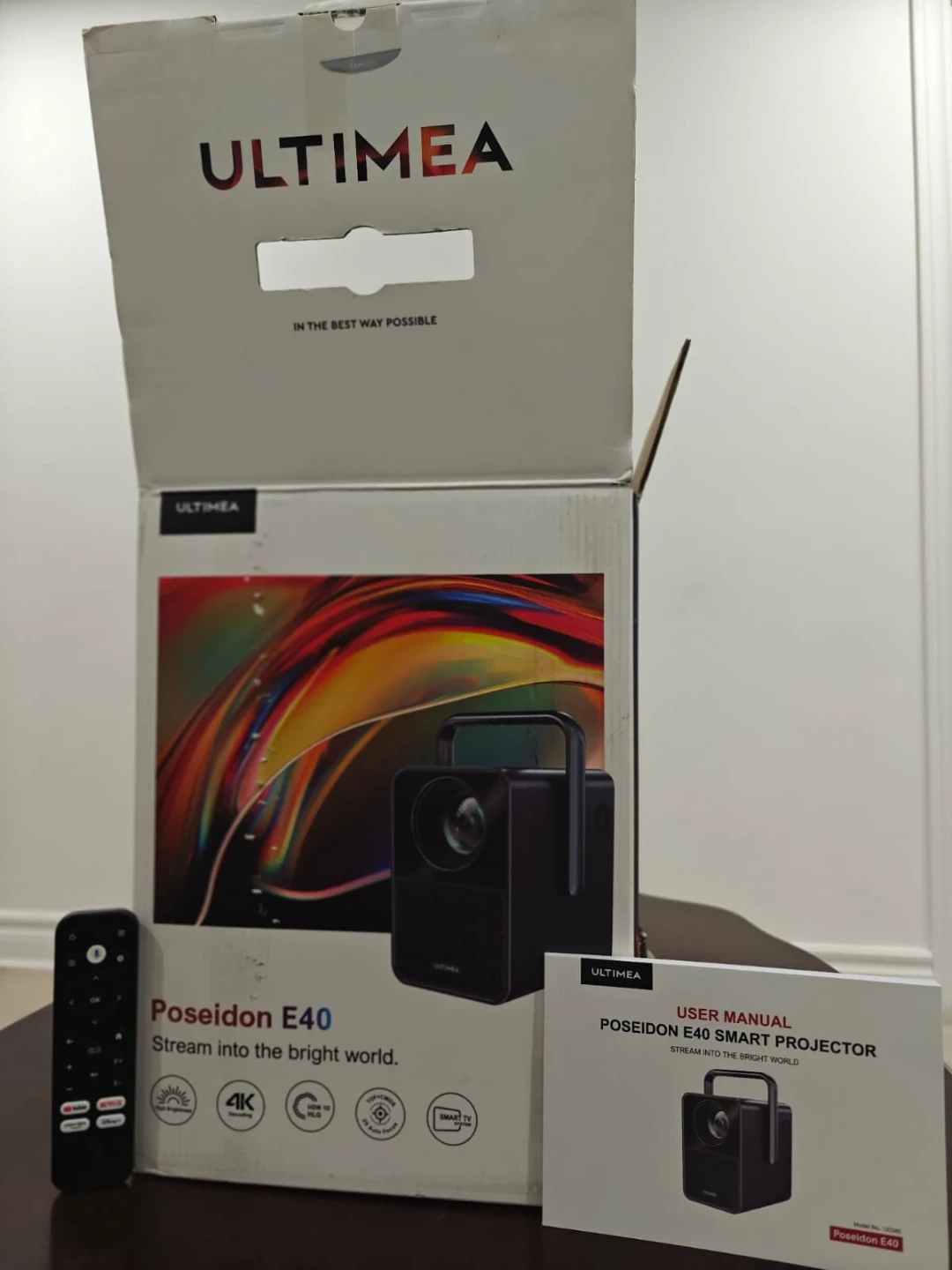 10Selling an Ultimea Poseidon E40 brand new unused projector in excellent condition! It comes with the original box and user manual. Enjoy streaming into the bright world with high brightness and 4K decoding. It also has HDR 10 HLG and 25 auto focus features. Great for movies and shows! Interested buyer can get it checked at my place before buying. (Will connect and run the projector to check the working and resolution)
