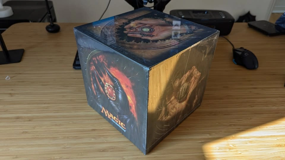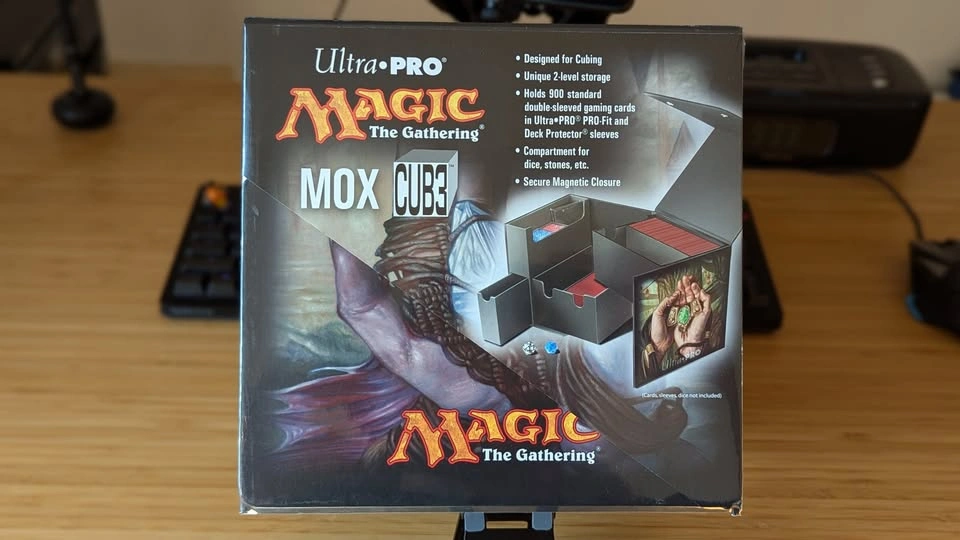 65Open to trades. Storage unit designed for cubing, a casual Magic: The Gathering format. Features iconic Magic "Mox" images on top and side panels. Holds up to 900 double sleeved cards with an extra compartment for small accessories. Unique 2-level fold-out design. Dimensions are 8½” x 8½” x 8½”. Show off your Magic: The Gathering cube collection in this limited edition "Mox" CUB3™, designed for cubing. Cube Draft is a casual Magic: The Gathering format where players create a cube, a large pool of cards selected for the purposes of playing a limited game. This storage unit features a unique 2-level fold-out design and holds 900 standard double-sleeved gaming cards with extra compartments for dice, markers, and other accessories. The entire unit is secured with magnetic button closure.